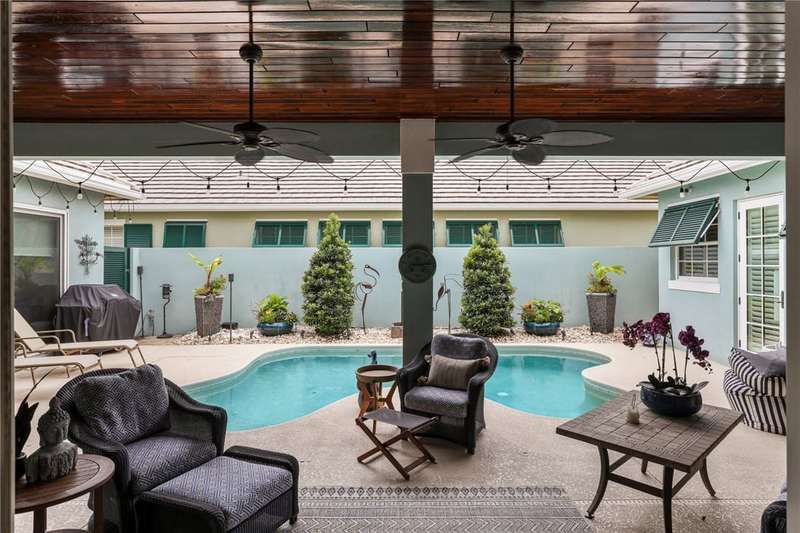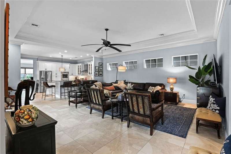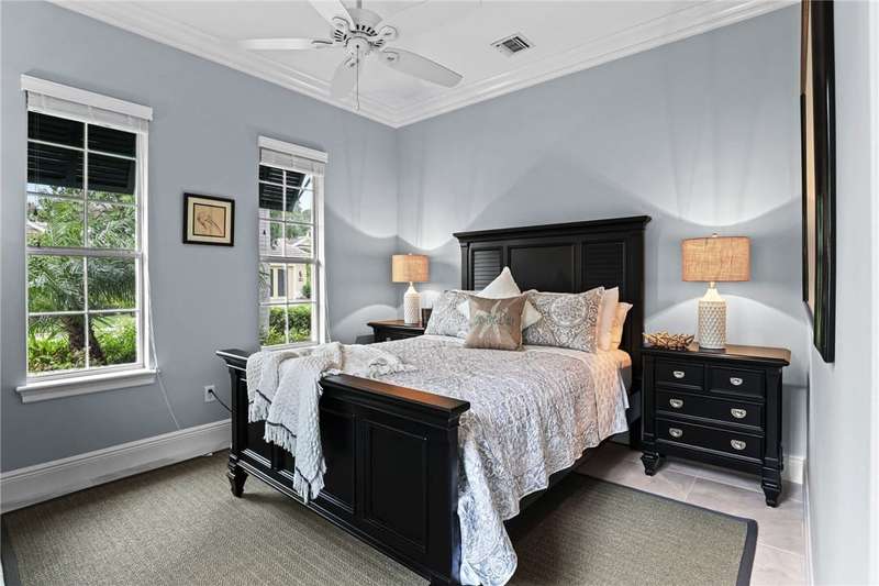 MUST SEE! Beautifully updated courtyard home with guest house on a premium lakefront lot. Elegant yet comfortable, featuring high-end finishes throughout, a designer kitchen with Wolf appliances, custom cabinetry, and a luxurious primary suite with spa-like bath and custom walk-in closet. Enjoy exceptional outdoor living with a private poolperfect for relaxing or entertaining. Solid concrete block construction, impact doors, natural gas, and full-house generator. Just minutes from the beach with top-tier community amenities. Sizes are approx/subj to error.