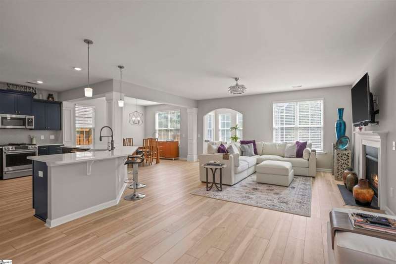 Welcome to 121 Hyssop Court! This stunning home is located in the highly sought-after Indigo Pointe community in Greenville. Step inside to an open-concept living space featuring a cozy fireplace, a sunroom, and a gourmet kitchen with a large island, bar seating, and high-end Cafe appliances including a six burner gas stove for added convenience to your everyday cooking. Just off the kitchen sits the dining area?perfect for hosting. Downstairs also has a convenient half bath, garage access, and a flex room which can be a butler's pantry or office. Upstairs, the spacious primary suite includes a luxurious ensuite bath, two walk-in closets, and large sitting area. Two additional bedrooms, a full bath, and a walk-in laundry room and large loft area perfect for a media room complete the upper level. Enjoy upgraded fans and lighting for a refined feel throughout the home. Outside, enjoy the fenced private backyard with shed and close access to the community walking trail?just a short walk to the neighborhood pool and minutes from the Swamp Rabbit Trail. Ideally located near Verdae Blvd, Woodruff Rd, and I-85/385 for easy access to all of Greenville's best shopping, dining, and entertainment! Don't miss out on the opportunity to make this gorgeous house your next home!