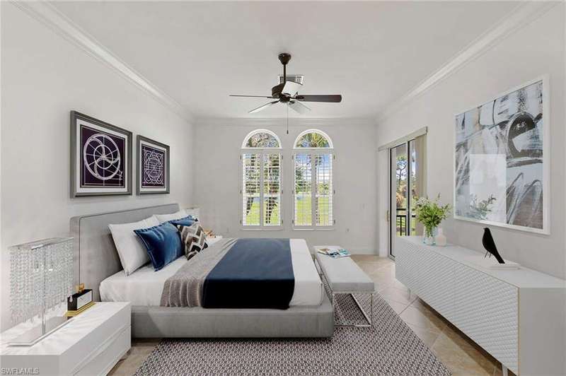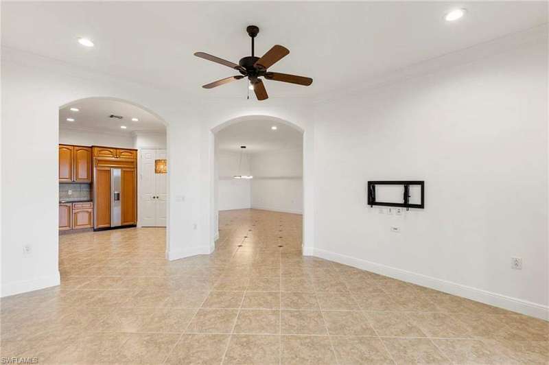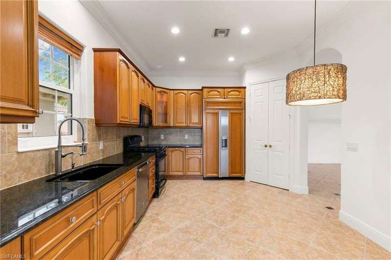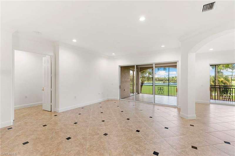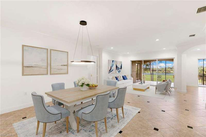 Step into elegance and comfort with this expansive 3-bedroom + den, 3-bathroom end-unit condo located in the well-regarded Cherry Oaks neighborhood. Boasting over 3,000 sq. ft. of interior space, this residence offers the ultimate in resort-style living. Enjoy panoramic golf course and serene water views from your private, expansive lanai - perfect for entertaining or relaxing and enjoying every Florida sunset. Enjoy intimate meals in your eat-in kitchen featuring granite countertops and a generously spacious pantry, or let the evening take you into your formal dining room where memories are waiting to be made. The property is further enhanced by crown moulding throughout and plantation shutters that adorn the home's impact glass windows. With rich wood flooring, built-ins, and crown moulding, the den lends itself as an ideal space to express one's more studious side. Complete with a 2-car garage, high ceilings, generous storage, and storm screens this home delivers luxury, convenience, and security. Don't miss this rare opportunity to own a beautifully maintained, move-in ready condo with unparalleled views and space! The resort style community of Fiddler's Creek is enhanced by a club and spa, fitness center, swimming pools, two golf courses, tennis courts, pickleball courts, a bocce court, fine and casual dining, social activities, and miles of biking and walking paths. Optional beach club and marina memberships are available. Experience the epitome of luxury living, where every detail is thoughtfully curated to complement your lifestyle.