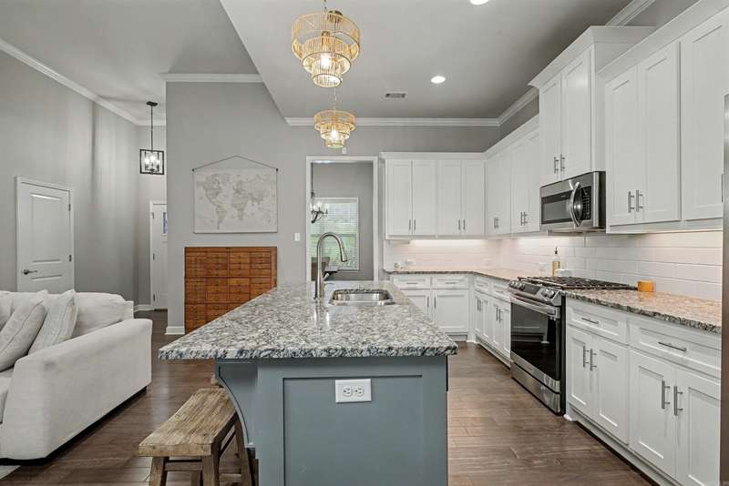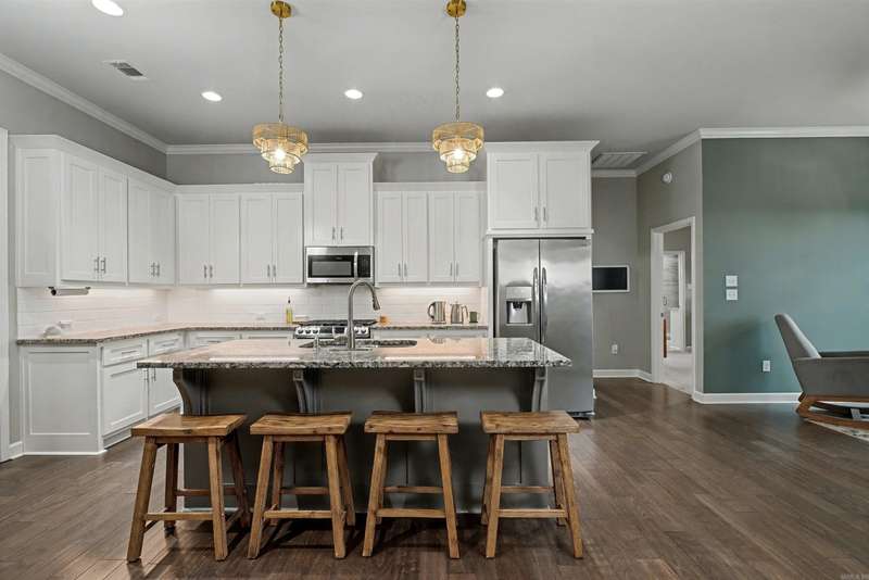 Immaculate Beautiful 4 Bedroom 2 Bath home in sought-after Waters Edge! Kitchen features custom cabinetry, Stainless steel appliances, massisive island, breakfast nook. Open Spacious Living room. Formal Dining Room. Laundry room with built in lockers and bench. Master Suite features double vanities, freestanding socker tub, separate walk in shower. Ideal Location near I-30/I-430. Top Golf, Shopping, Dining, and Medical. Neighborhood Lake with walking/biking Trails. Large Back Yard! Private covered patio and fence also gas setup for future outdoor kitchen. Won't Last long... Come see it today!