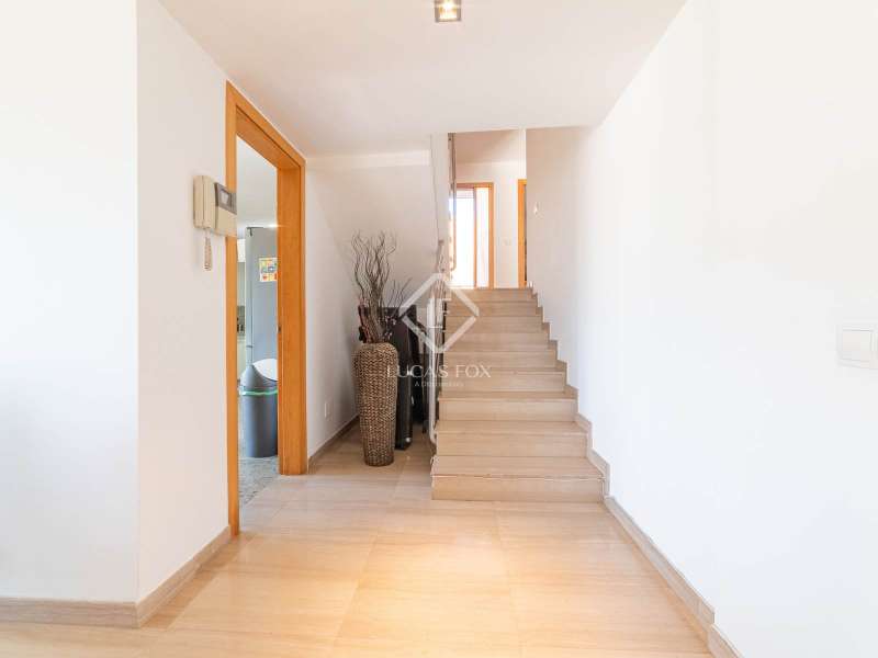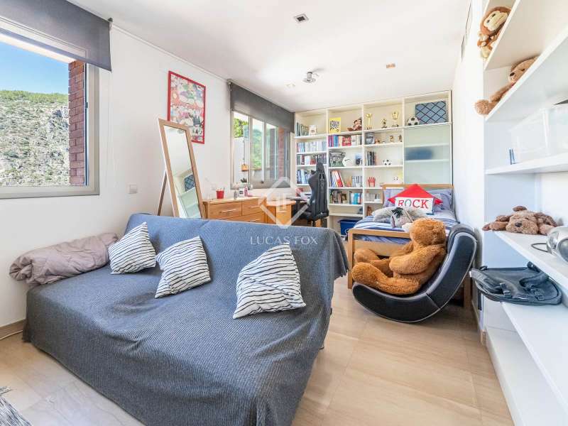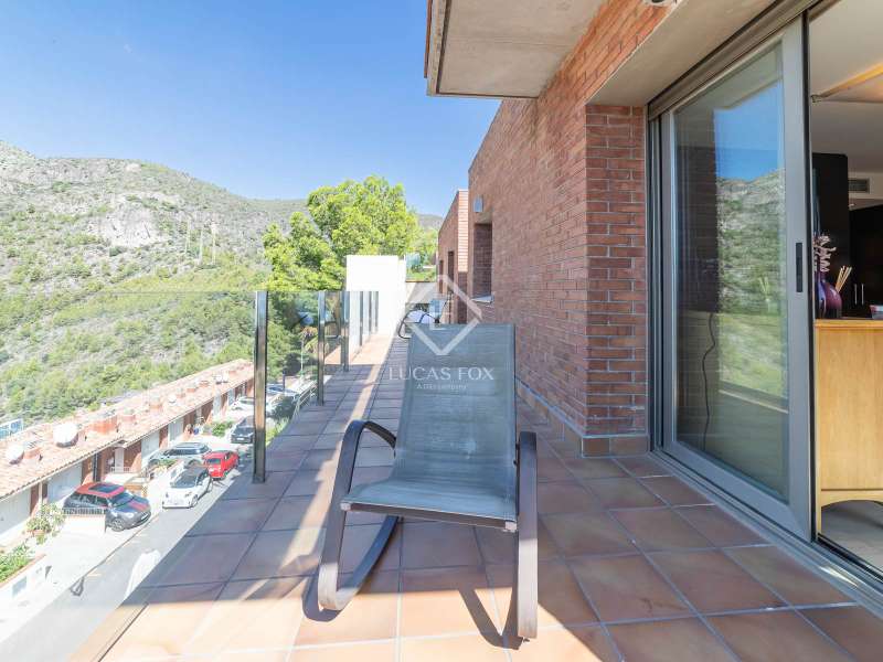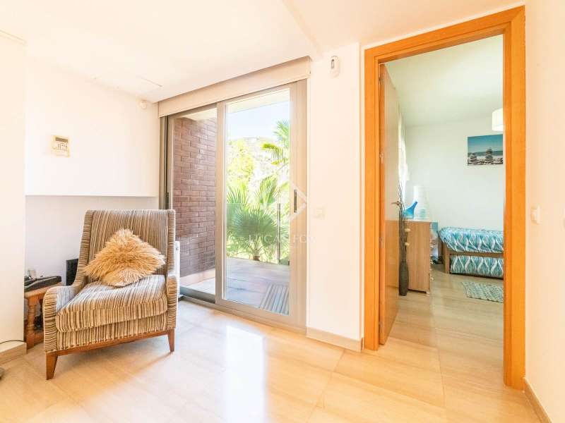 This 445 m² house on a plot of 817 m² was built in 2004 and enjoys a great location in the Boutiques de Sitges neighbourhood, with amazing sea and port views and very easy access to the motorway, the beach, Castelldefels and Barcelona. This spacious modern property has large windows and many terraces as well as a wrap-around terrace / garden with a pool on the main floor, a cactus garden to one side and a huge flat garden area leading off of the top floor. Set across several different floors, the house has a lift and offers good privacy in this peaceful residential area backed by the Garraf national park. On street level we find a large double garage, a storeroom and the entrance hall with a lift. The first floor offers a great independent apartment with a living room, bedroom and bathroom. Going up to the second floor by lift or stairs we find an entrance followed by a spacious living-dining room with amazing views and 3 sets of floor-to-ceiling windows, connected to a wrap-around terrace and pool, all with port and sea views. The large, fully equipped kitchen with a gas stove also has terrace access and a bedroom and complete bathroom are also found on this level of the house. The third floor, which is a half staircase up from living area, accommodates the master suite with sea and mountain views and access to a wrap-around terrace via 2 sets of sliding doors. The en-suite bathroom in the master bedroom has a spa bath, a separate shower and 2 sinks. Moving along the hallway, which also provides access to the terrace, we encounter a second large bedroom that is currently used as an office with pre-installation for a bathroom and has amazing dramatic mountain views. The fourth and final floor, which is half a floor up, has 2 small double bedrooms, one with access to the huge terrace/garden area, and one complete bathroom with a bathtub. An office area in the hallway has a balcony offering dramatic sea and mountain views. Further features of the house include the alarm system, water purifier, underfloor heating throughout and the hot and cold air conditioning system on the top 2 floors. Contact us to arrange a visit of this wonderful family home in Boutiques de Sitges, Garraf II.
