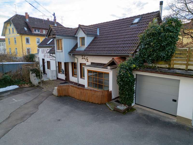 For sale is a well-kept residential and commercial building in a central location in Villingen, which was built in 1949 and extensively modernized and renovated in 1998, 2013 and 2015. This house was built on a backyard and offers an ideal basis for a wide range of possible uses. The residential building represents a co-ownership share of the entire property as well as the exclusive right of use for your own residential unit. The apartment building, which is located at the front of the property on the street, represents the complementary part of the community of owners. A total of approx. 126 m² of living space is spread over two floors. Of this, approx. 69 m² is located on the first floor (office space) and approx. 57 m² on the top floor (living space). The offices on the first floor are each accessible via a separate entrance. These rooms are therefore ideal for smaller service companies or as office space. A floristry business is also conceivable, for example. The possible uses are diverse. You will also find the entrance to the house and a daylight bathroom in the middle of this floor. On the top floor, the property offers a cozy living area for living and relaxing. A bedroom, a bathroom with shower tray and WC and a charming, open-plan living room with spacious kitchen. A wood-burning stove ensures a pleasant indoor climate on colder days. The living area is rounded off with a roof terrace. The house is heated by gas central heating. The windows are made of wood insulating glass. The residential and commercial building is in good, well-kept condition. There is a parking space for your car and the vehicles of family, friends or customers. Adjacent to the house is a garage and there are further outdoor parking spaces directly in front of the property, in the courtyard. The house is ready for immediate occupancy. The outstanding feature of this property is its central location in Villingen. Villingen train station is just a few steps away. It is only a few minutes' walk to the center of Villingen. You can also combine living and working wonderfully in this property. If you are interested in this exceptional property, we look forward to showing it to you in person. We are available for a viewing by prior arrangement. Please do not hesitate to contact us for further information or to arrange an appointment. Your Team VON POLL Real Estate Villingen-Schwenningen