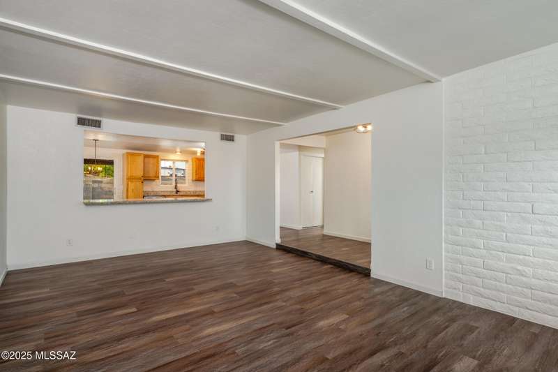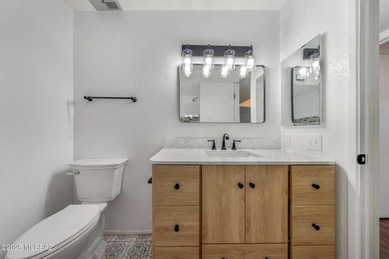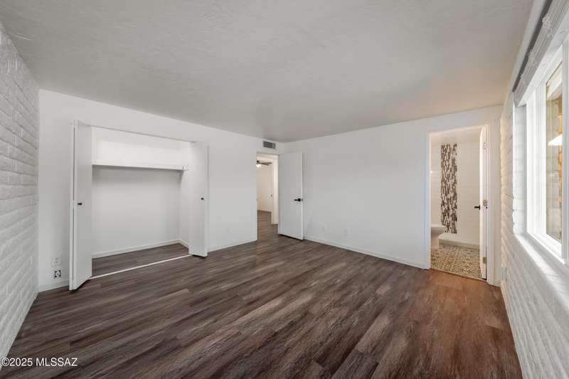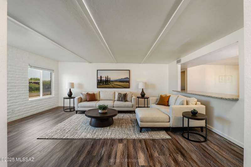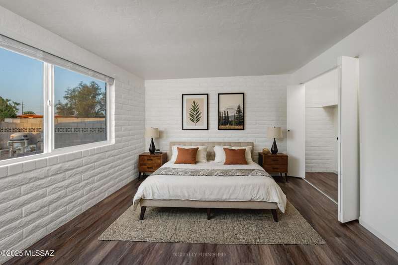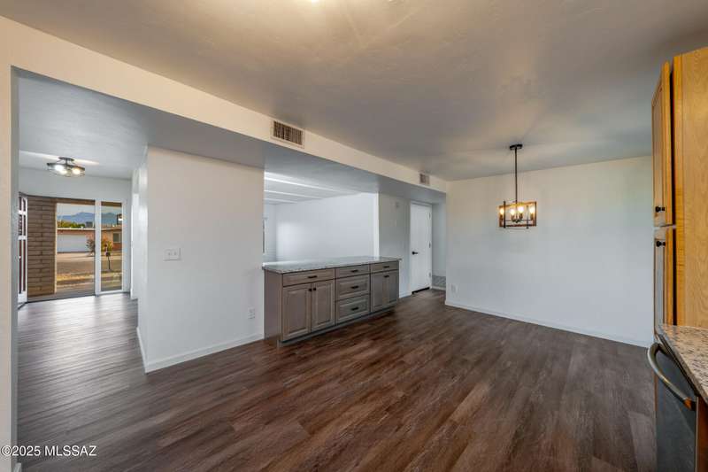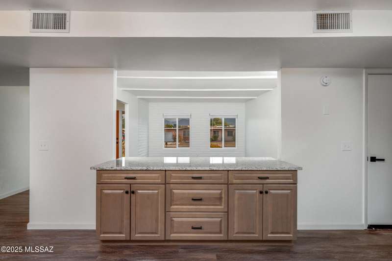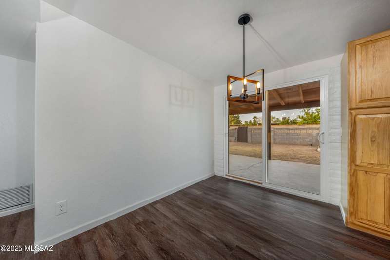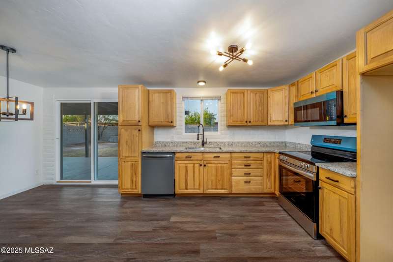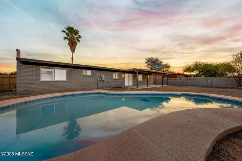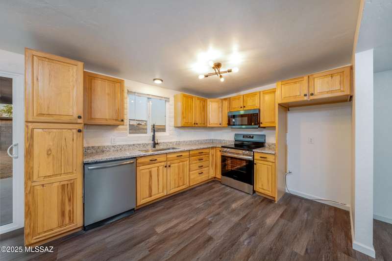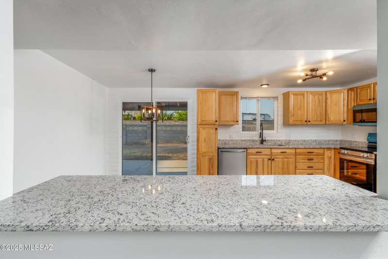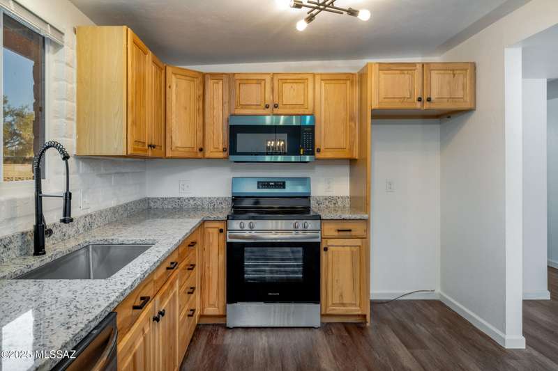 Welcome to your refreshed Tucson retreat! Step inside and discover a thoughtfully updated home with modern finishes throughout. Fresh interior paint in crisp neutral tones and new windows set the stage for natural light to flow through the open great room design. The kitchen features honeywood cabinets with new hardware, granite countertops, stainless steel Frigidaire appliances, and a breakfast bar that seamlessly connects to the living space.Contemporary lighting and quality fixtures complement the primary living areas, while a guest bedroom off the kitchen and garage offers comfort with its own closet and lighting. The enlarged laundry room with backyard access adds everyday convenience and extra storage.