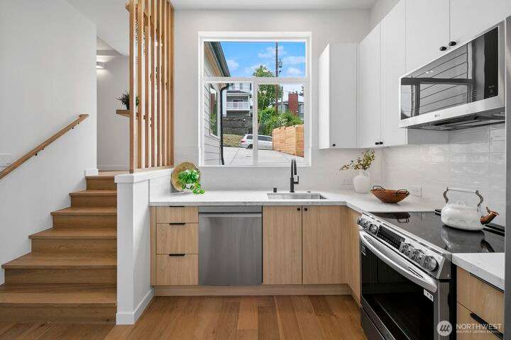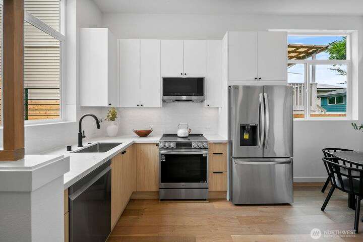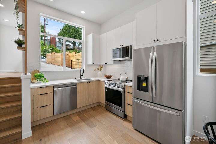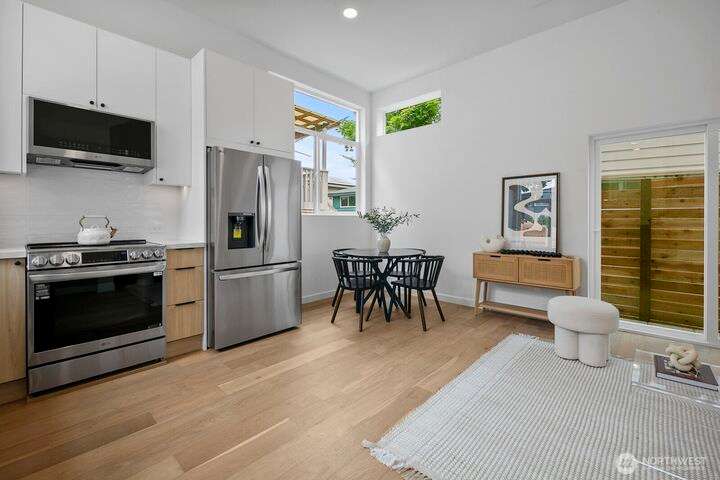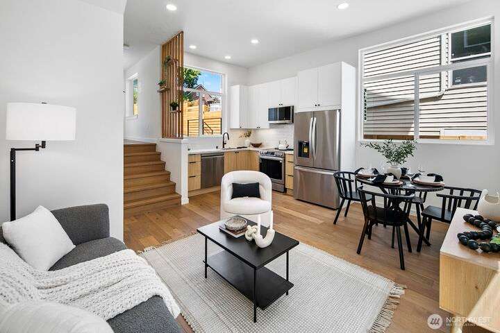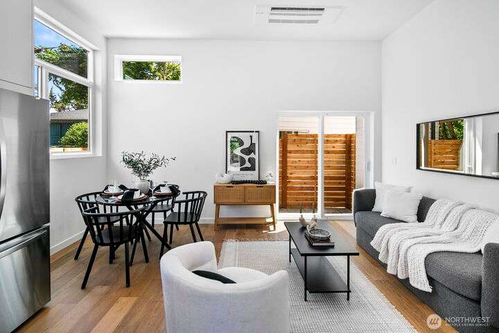 NOW WITH PARKING! Modern and light-filled, this 2-bed/1.75-bath home marries smart design with refined finishes. Open-concept living is crowned by a private patio and a rooftop deck made for effortless entertaining, al fresco dining, and quiet mornings with coffee. This home pairs energy-saving HVAC and sleek modern finishes throughout. Thoughtfully laid out, you'll appreciate the spacious kitchen, well-appointed baths, and ample storage. Whether commuting via LINK light rail, visiting nearby Jefferson Park, or meeting friends at Oak or Victrola Coffee, everyday needs and local favorites are minutes away. Low-maintenance living lets you spend weekends exploring Beacon Hill or hopping the train downtown.