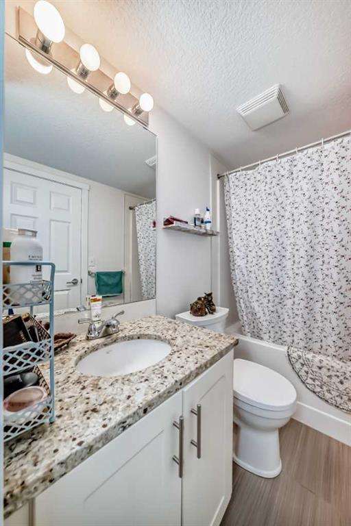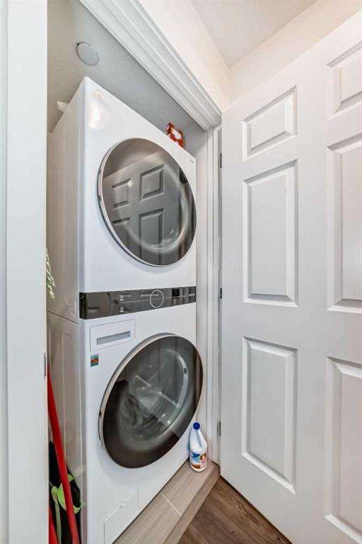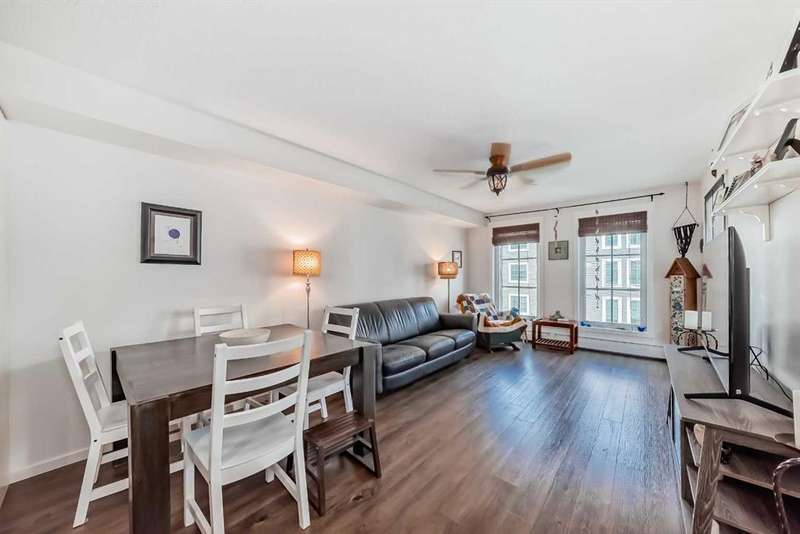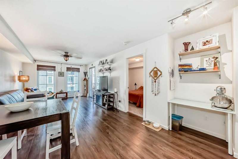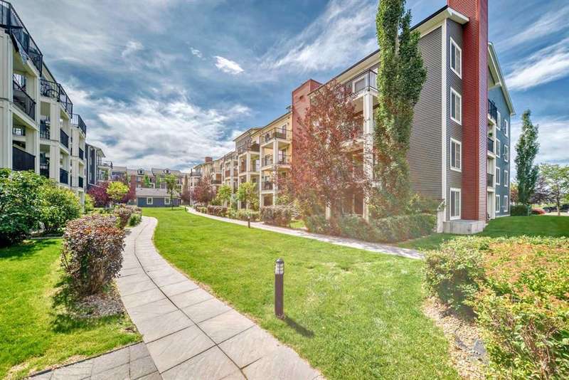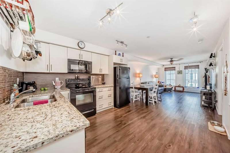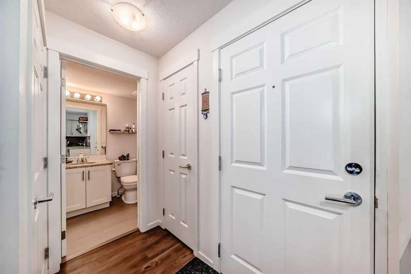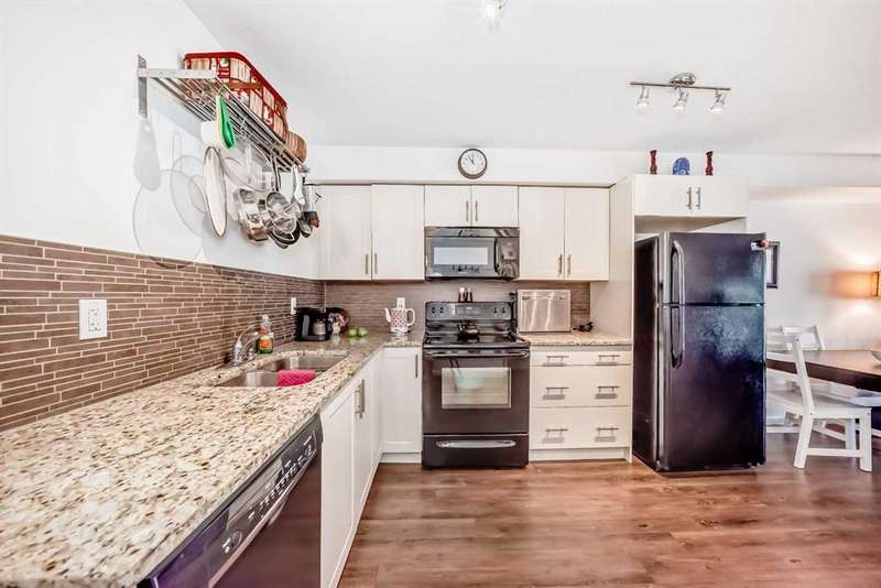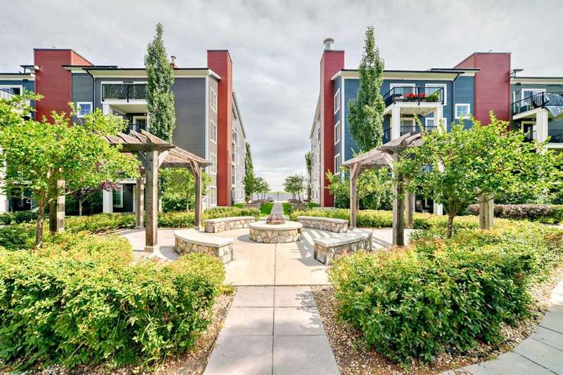 Step inside to an open-concept living area featuring laminate flooring, granite countertops, stylish white cabinetry, and matching black appliances. The bedroom has brand-new carpet and offers a generous walkthrough closet that connects directly to the 4-piece bathroom. Enjoy your private balcony overlooking the peaceful courtyard, complete with a community firepit and mountain views on a clear day. A gas line and BBQ are included, making it perfect for outdoor entertaining. Additional conveniences include in-suite laundry with a stackable washer/dryer and a handy coat closet/extra storage. This unit also comes with a titled outdoor parking stall and an assigned storage locker for extra space. Solar panels were recently installed in the complex, helping to reduce overall energy cost and improve sustainability. This is a PET FRIENDLY complex (with board approval)! The Copperfield community offers direct access to pathways, green spaces, schools, shopping, and quick access to Deerfoot and Stoney Trail. This home is a fantastic opportunity for a first-time buyer, downsizer, or investor!