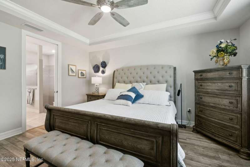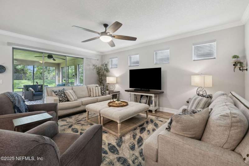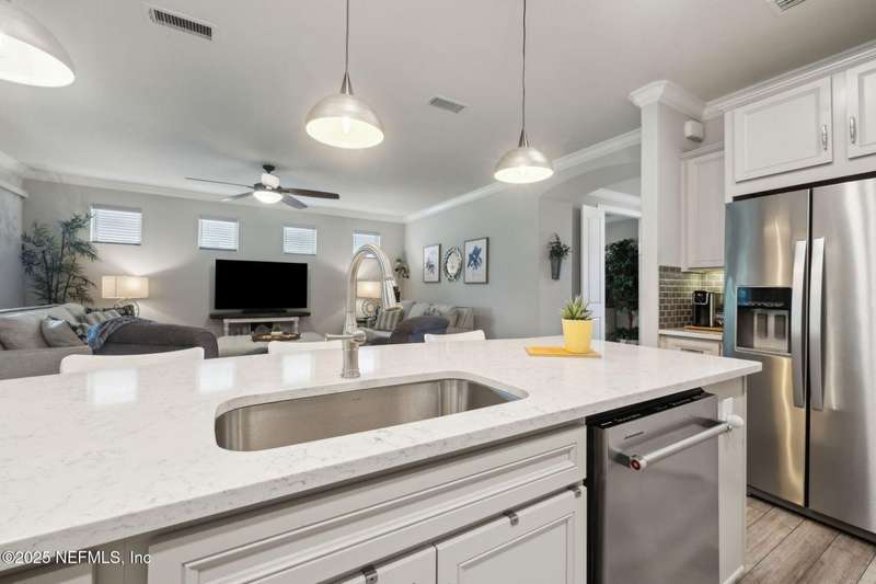This home truly shows like a model AND the furniture is negotiable!! Floorplan is open and spacious with 3 full bedrooms, office and two baths and unlike anything else on market at this time in this 55 plus community of Bridge Bay at Bannon Lakes. Conveniently located just minutes to historic St. Augustine with its amazing restaurants and beaches. Home has a beautiful kitchen with large island with quartz countertops, tile backsplash and gas cooktop which opens to the large eat in area and spacious family room. Owners suite is large with glamour bath with double vanities, large walk in shower and oversized walk in closet. The family room has triple sliders that open to spacious tiled, screened patio large enough for any size get together and a gas grill. Two more bedrooms with full bath and a office with double doors complete this home. Upgraded LVP flooring throughout, no carpet. Garage has epoxy floors. Large backyard. This home is a dream and will not disappoint.