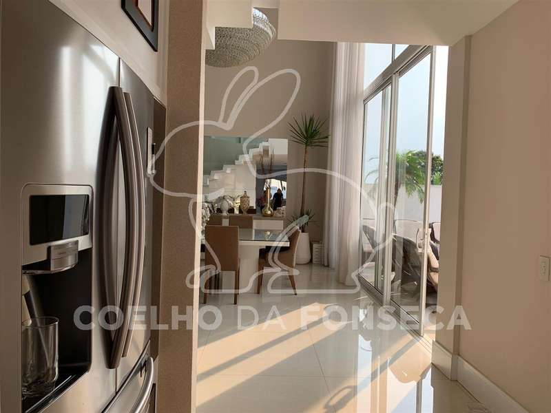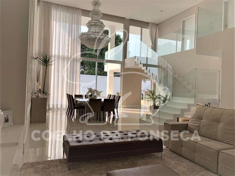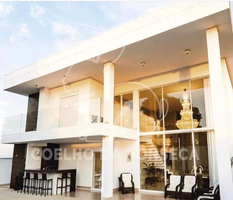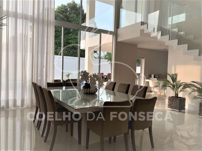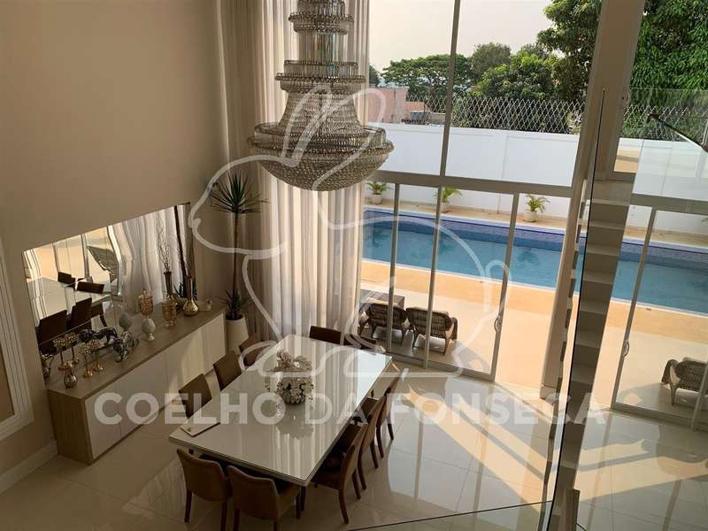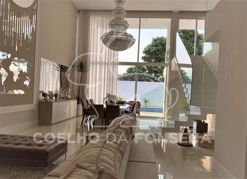 Casa em Condomínio no bairro Vale Azul II com 417m² área construída, 3 dormitório(s), 3 suíte(s), 8 vaga(s), 4 banheiro(s), piscina, ar condicionado, dep. de empregados, pé direito duplo.