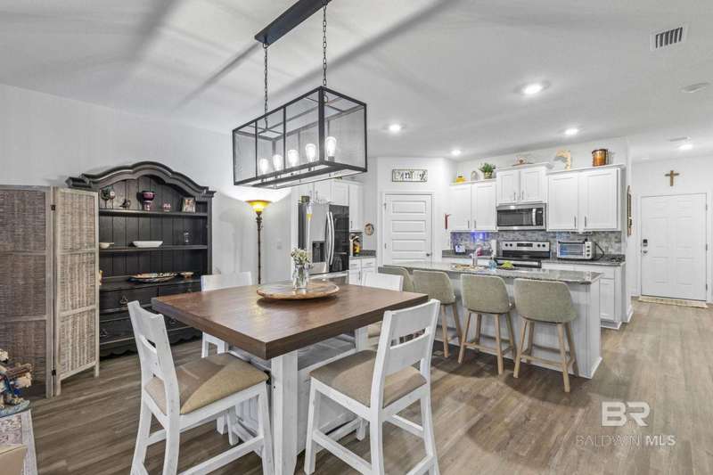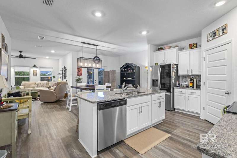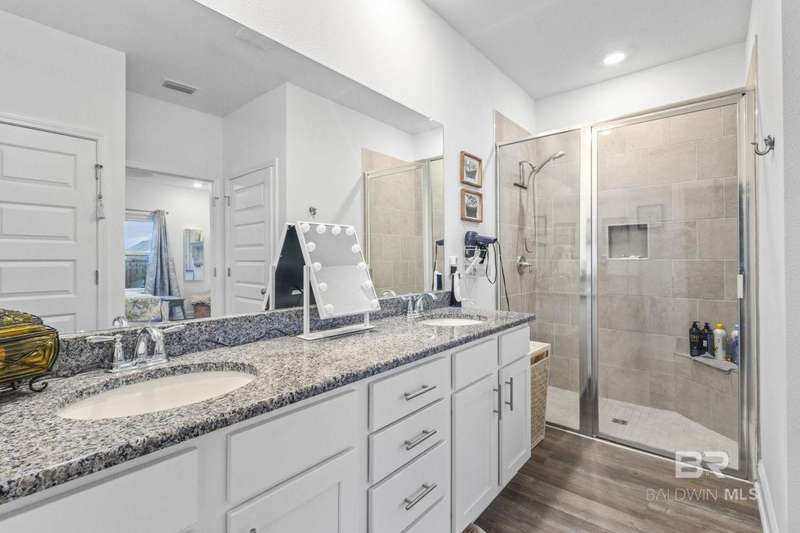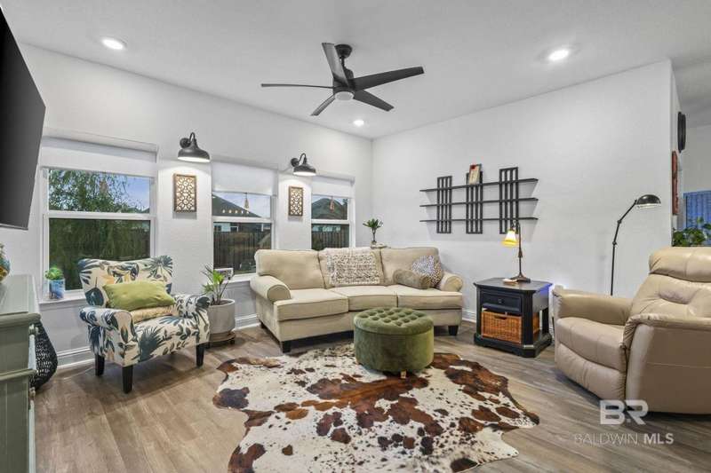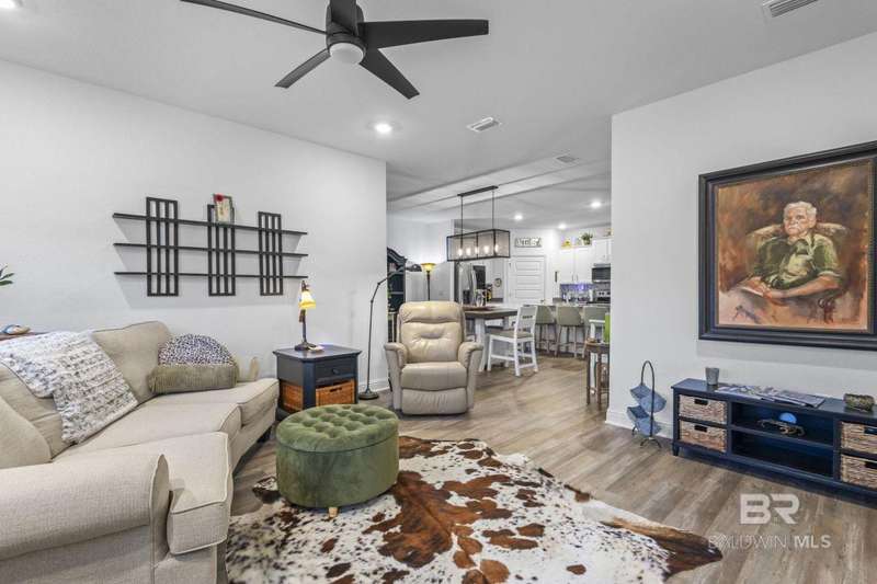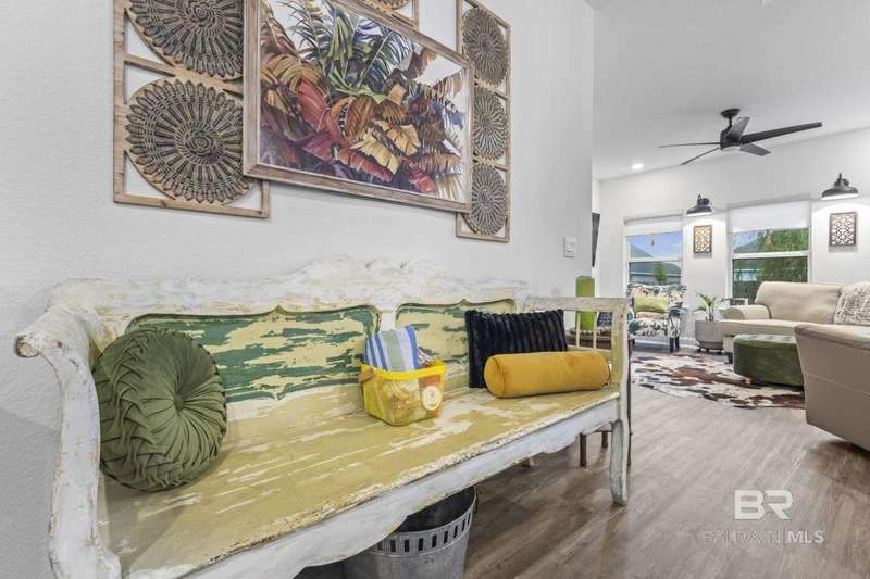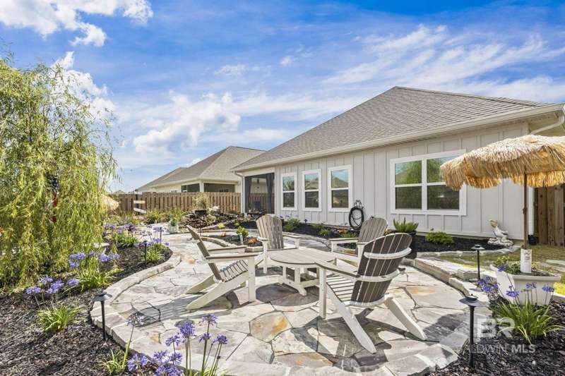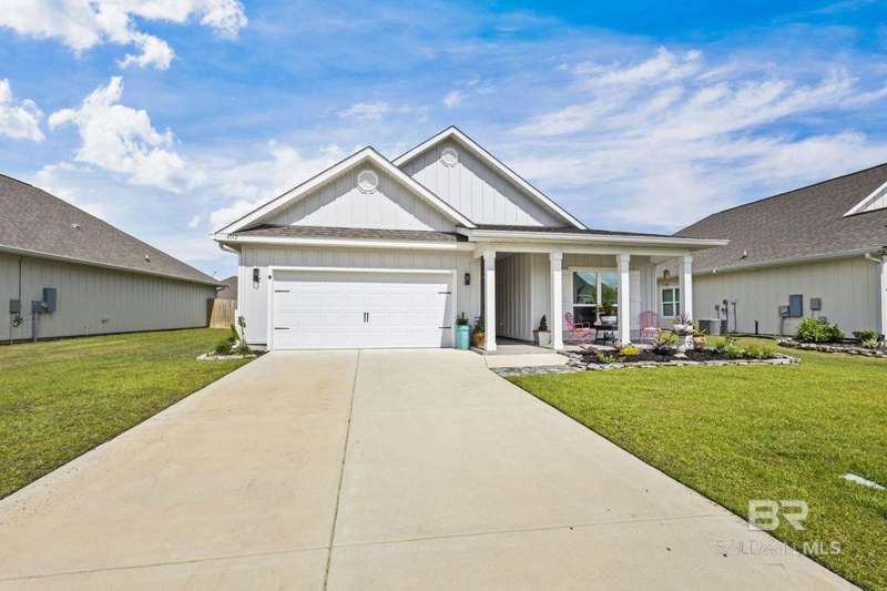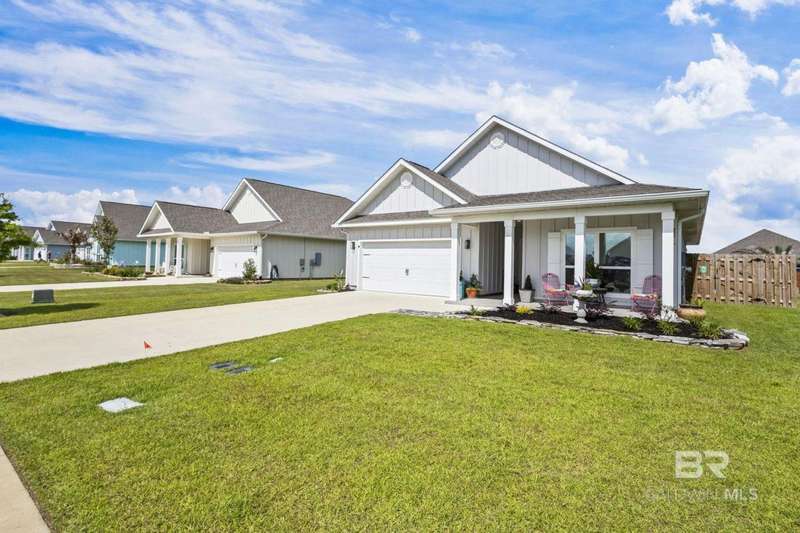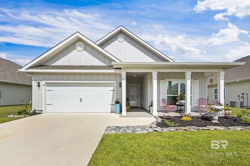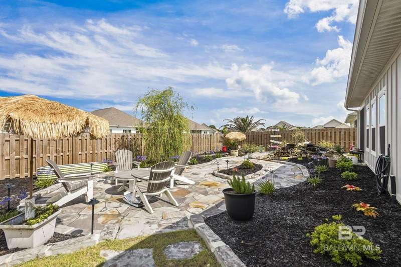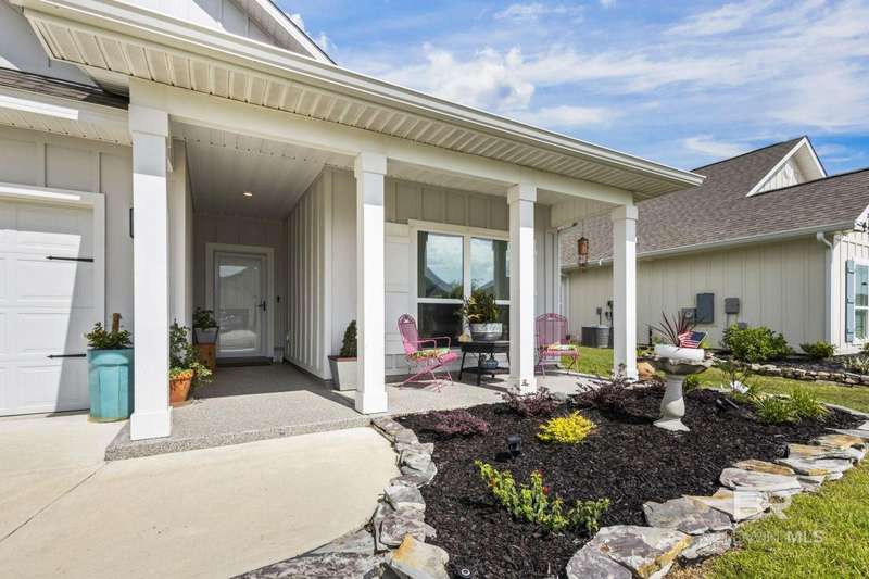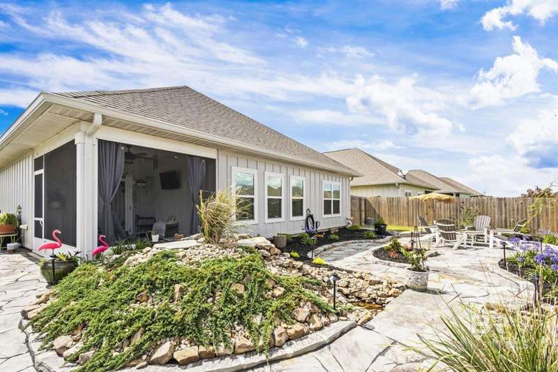Welcome to this immaculate 3-bedroom, 2-bath home nestled in the highly sought-after 55+ active community of The Village at Craft Farms. Offering a vibrant lifestyle and top-tier amenities, including pickleball courts, a putting green, community pool, and included lawn maintenance, this home blends comfort, convenience, and resort-style living. Step inside to an open-concept layout bathed in natural light, with privacy-enhancing reflective windows that offer seclusion without sacrificing sunlight. The spacious kitchen features stainless steel appliances, abundant cabinetry, and a functional flow for everyday living. The primary suite is a serene retreat with a walk-in closet that connects directly to the laundry room, a double vanity, and a custom tile shower. Outdoor living is just as impressive with a beautifully landscaped backyard boasting custom stone pathways, a tranquil waterfall feature, and multiple seating areas, for quiet mornings or entertaining guests. Enjoy relaxing evenings on the screened-in back porch or greet neighbors from the charming covered front porch. Additional features include a two-car garage and a location that's just minutes from medical service, shopping, dining and the BEACH. Don't miss the opportunity to live in this vibrant community! Buyer to verify all information during due diligence.