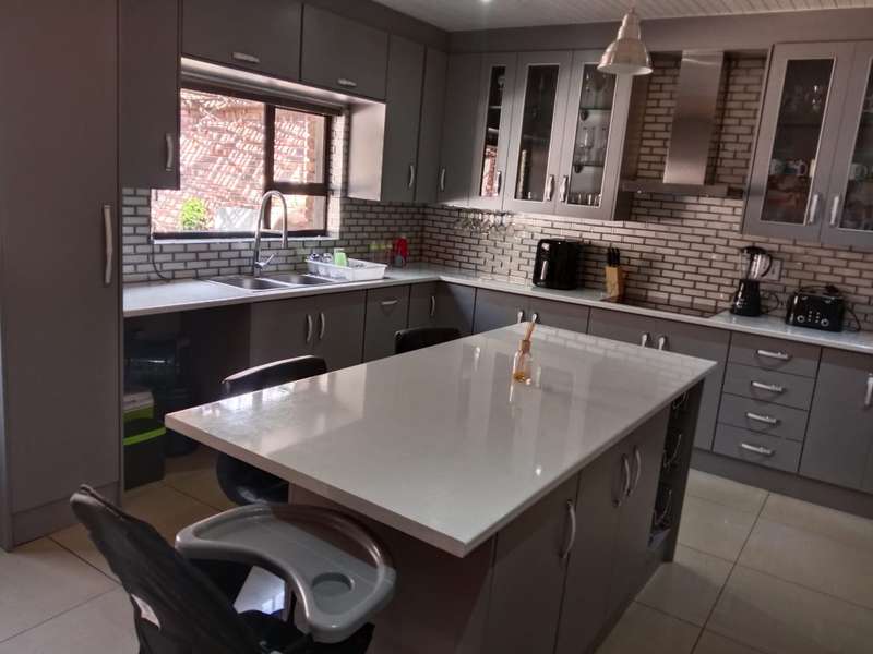 Lovely 3 Bedroom House For Sale. This Property has potential for further development. 3Bedroom house, all bedrooms has build in cupboards. The main bedroom has its en-suite bathroom. The one bedroom is decorated lovely with paint art on the wall perfect for a young child or can be used as a nursery for a new born baby. 2 lovely Bathrooms, and a guest bathroom. 1 Modern Kitchen with build in cupboards and it has its own island in the middle. 1 Dining area. 1 Spacious Lounge area. Double Garage, as well as a double carport parking space. The space for parking is very spacious more than 4 vehicles can fit in. For a lovely day outside you can spend it two ways, 1 in your braai area with family and friends, 2 or to spend it in your big yard to do some gardening. The big yard is a bonus for children and pets to play in as well as developing ideas. The house also comes with a pool. Borehole and 3-phase electricity. Don't miss out on this big opportunity contact us today!