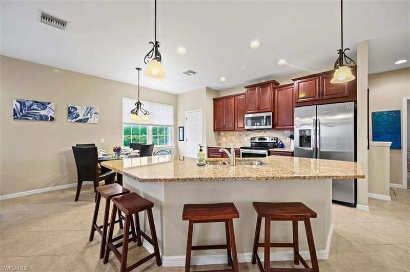 SOUTH FACING LAKE VIEW!! This gorgeous 3-bedroom + Den, 2-bathroom condo is perfectly located just north of Estero in the desirable Creekside Preserve community in South Fort Myers. Situated on the second floor, this home features an open floor plan that effortlessly combines the living, dining, and kitchen areas to create a bright and inviting space, perfect for both relaxing and entertaining. The kitchen is equipped with stainless steel appliances, ample cabinetry, and a spacious kitchen island with counter seating - ideal for casual dining or entertaining guests. The adjoining living and dining areas open up to a screened lanai, where you can enjoy peaceful water and fountain views. The primary bedroom is a true retreat, complete with a luxurious en-suite bathroom featuring granite countertops, dual vanity, a walk-in shower, and a generous walk-in closet with plenty of hanging space. The second and third bedrooms are filled with natural light and each offers a spacious closet for ample storage. The den is the perfect space for an office, or a flexible room to suit your needs. The guest bathroom is equipped with a tub and shower combination, offering convenience and comfort for visitors. Plus, this unit boasts plenty of additional storage space throughout, ensuring you have room for everything you need. Creekside Preserve is a gated community offering low HOA fees and an array of amenities, including a clubhouse, resort-style pool, exercise room, and more! Ideally located just a short drive to the beaches, I-75, RSW International Airport, shopping, dining, and entertainment.