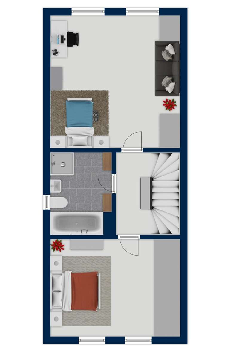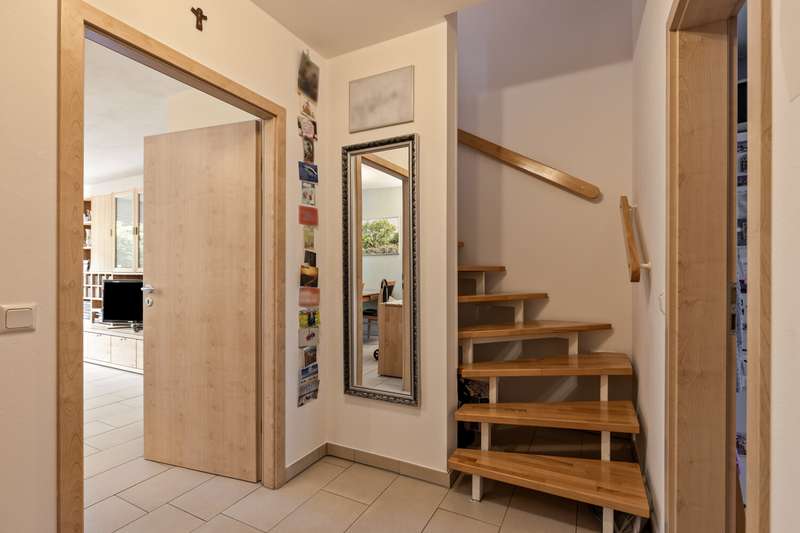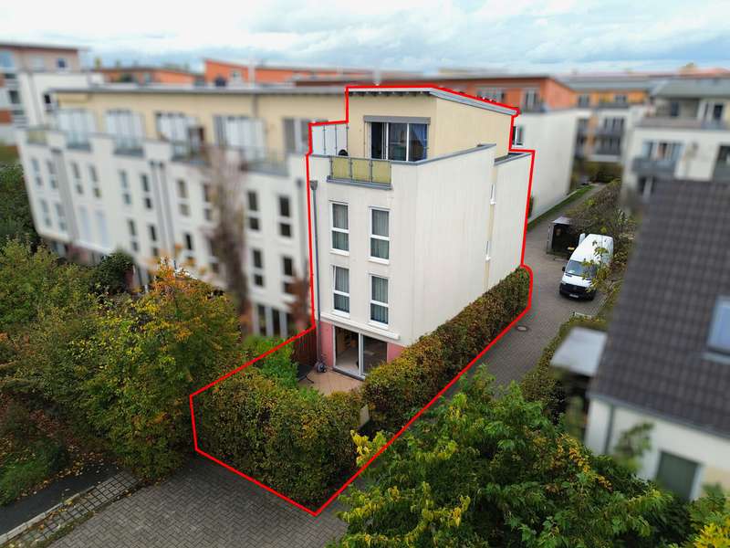VON POLL IMMOBILIEN presents this well-kept detached house in the popular Cologne district of Nippes - in the middle of the car-free Stellwerk 60 estate. The terraced corner house was built in 2006 on a plot of approx. 114 m² and has a living space of approx. 186 m² on four floors. Clear floor plans, large windows and the quiet neighborhood location give the house a friendly, bright and pleasant living atmosphere. On the first floor is the entrance area with hallway, from which the separate kitchen, the guest WC and the open-plan living and dining area are accessible. Here, the expansive window front provides plenty of light and creates a flowing transition to the terrace and the low-maintenance garden in a sunny south-facing position - perfect for cozy hours outdoors. A steel stringer staircase with solid beech steps connects all floors and underlines the harmonious overall appearance of the house. The second floor boasts two generously proportioned, bright bedrooms and a bathroom with bath and shower. On the second floor, there are two further versatile rooms that are ideal as children's rooms, study rooms or guest rooms. This floor is complemented by a comfortable shower room and a storage room - functional and family-friendly at the same time. The top floor is the highlight of the house: a spacious studio as a retreat for living or working. From here, there is access to the south-facing roof terrace with sweeping views over the rooftops of the development. In addition to a utility room, there are two further storage rooms in the basement, which offer a variety of uses for supplies, hobbies or additional storage space. The terraced corner house is heated by energy-efficient local heating and is in a very well-kept and contemporary condition overall. A lockable bicycle garage and a parking space in the nearby parking garage are also just a few minutes' walk away and round off the attractive overall offer. Quartier Stellwerk 60 is one of the most popular residential areas in Cologne-Nippes - quiet, green and car-free. Communal open spaces, play areas and short distances to kindergartens, schools and shopping facilities make the location particularly attractive for families who value a child-friendly environment with a mature residential character in Cologne. There are very good public transport connections (S-Bahn, U-Bahn, bus), which means that Cologne city center or the main train station, for example, can be reached in a short time. Have we piqued your interest? If so, we will be happy to provide you with further information and arrange a viewing appointment with you.