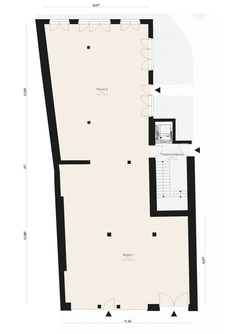 The historic Consum quarter in the heart of the city center of Brandenburg an der Havel is currently undergoing renovation and new construction and is scheduled to offer space for 26 residential units, 5 commercial and office units, 2 stores and around 33 underground parking spaces from spring 2025. This store has a total usable area of approx. 296 m² on the first floor and in the basement. The sales area offers barrier-free access and a generous area of approx. 246 m². The basement houses the associated ladies' and men's rooms' toilets as well as storage and supply rooms. There is a passenger elevator in the stairwell which can be used by staff and customers alike. A highlight will be the street-side window front with a height of up to 3m. The rear part of the retail space is also extensively lit by large windows. If the space provided is not sufficient for your project, additional space in the basement can be rented by arrangement. As the building is currently under construction, the store can be individually adapted to the needs of the future tenant. This means that a variety of commercial types can be realized. The entire store is heated with energy-saving underfloor heating. The energy is generated CO2-neutrally by a wood pellet heating system. The inner courtyard above the underground car park connects the front part of the building with the rear part and is to be landscaped with a small park. Various employee and customer parking spaces will be available in the underground garage after completion. The tenancy is scheduled to begin after completion of the construction work in spring 2025. Benefit from considerable footfall in front of your store. Thanks to the good room layout and high-quality fittings, this commercial unit is ideal for an organic market or retail outlet, for example. The basic rent is approx. 18.00 €/m² plus utilities for the sales rooms and 9.00 €/m² plus utilities for the ancillary rooms. Three times the basic rent is paid as a deposit to the landlord. Convince yourself of the potential of the fabric unit and realize your individual business.