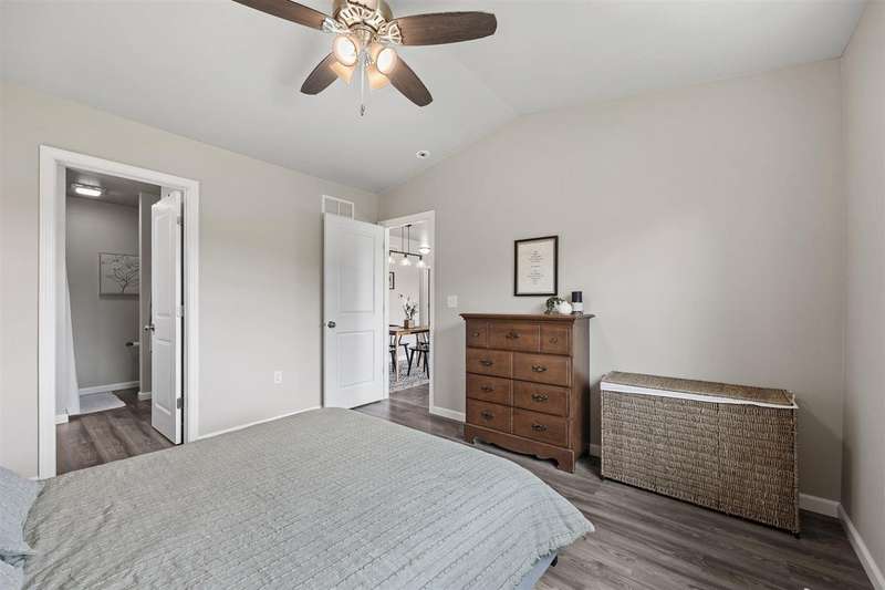 Welcome home to this beautifully maintained single-family retreat, thoughtfully built in 2021. From the moment you step inside, you’ll appreciate the comfortable flow & modern finishes throughout. The heart of the home is the open-concept kitchen & breakfast area, perfect for gathering with loved ones. Step right out onto the spacious deck, ideal for morning coffee or summer evenings overlooking the backyard. To the north, a lovely tree line creates a natural sense of privacy, making the outdoor space feel like your own peaceful sanctuary. The main level features the primary suite along with a second bedroom & full bath. Downstairs, you’ll find a third bedroom & an additional bathroom, offering flexible space for guests, a home office, or a hobby area. Whether you’re entertaining friends or enjoying a quiet night in, this home offers the perfect blend of warmth, comfort, & modern convenience.