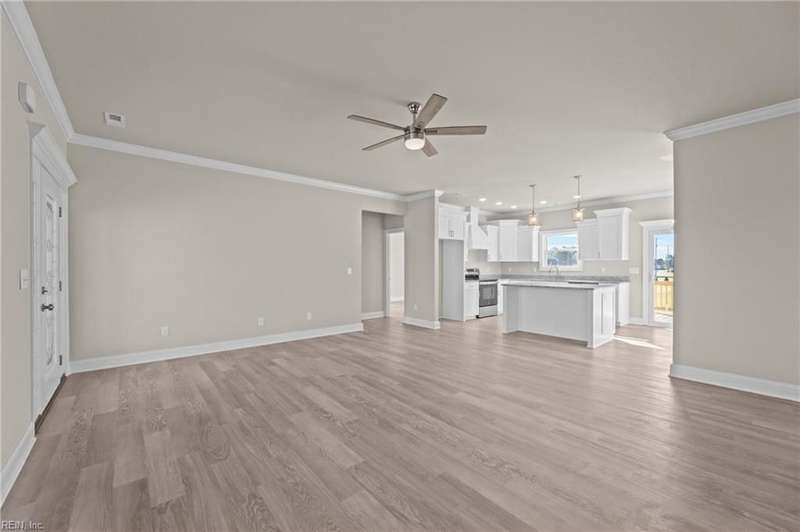 Ready for Immediate Occupancy! This stunning new construction 3-bedroom, 2-bath home features a spacious FROG (Finished Room Over Garage) that can easily serve as a 4th bedroom, home office, or bonus room. The open floor plan is filled with natural light, highlighting a gorgeous kitchen with a massive island?perfect for entertaining. The master suite offers a peaceful retreat with ample space and comfort. Step outside to an oversized back deck, ideal for barbecues, gatherings, or simply relaxing in the fresh air.ing