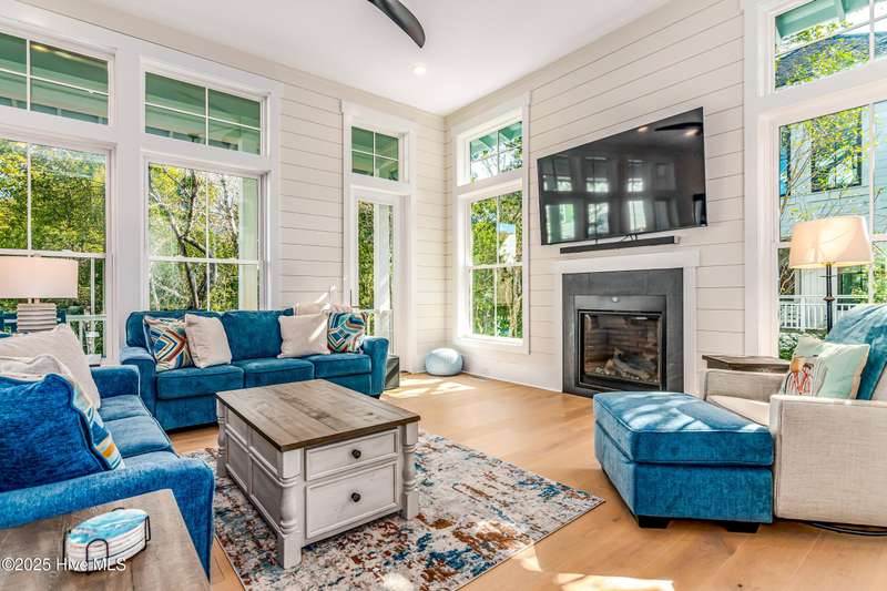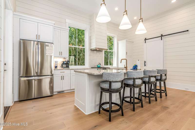 Custom Design by Architect Peter Quinn - Built by Cape Fear Custom Design & Build - Todd Delaney. This new construction home built in 2024 is set back into a private cove in Cape Fear Station. 12 ft Ceilings and ample light from walls of windows greet you as you enter the open floor plan. The kitchen offers a large quartz island with all stainless steel appliances and equipped with a gas stove. There is a large screened porch off off the kitchen for dining al fresco. The primary bedroom is located on the first floor. All 4 bedrooms are suites plus a half bath on the main floor. Shiplap featured in the living room and kitchen. There is a gas fireplace in the living room. Two cart garage features electric garage door openers. There is a transferable Lifestyle membership is available for separate purchase.