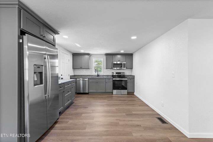 Sellers are relocating - make their move your opportunity! Don't miss this beautifully renovated home sitting proudly on a corner lot in the heart of LaFollette. This property has been completely transformed - taken down to the studs and rebuilt with quality craftsmanship throughout. No detail was overlooked: upgraded insulation and windows, brand-new roof, siding, porches, plumbing, electrical, HVAC, and more. Step inside and you'll love the open-concept layout and stylish LVP flooring that flows seamlessly throughout. The light-filled living room connects perfectly to a stunning all-new kitchen featuring solid oak cabinetry, granite countertops, and stainless steel appliances - ideal for both everyday living and entertaining. The primary suite feels like a retreat, complete with a custom-tiled walk-in shower. Even better - the neighboring home is also undergoing a full renovation, adding even more appeal and value to the street! This home qualifies for 100% financing, meaning zero money down for eligible buyers. FHA, USDA, and VA friendly! Located just minutes from popular ATV trails and Norris Lake, this move-in-ready home truly has it all. You simply won't find another like-new home at this price. Call today to schedule your private showing!