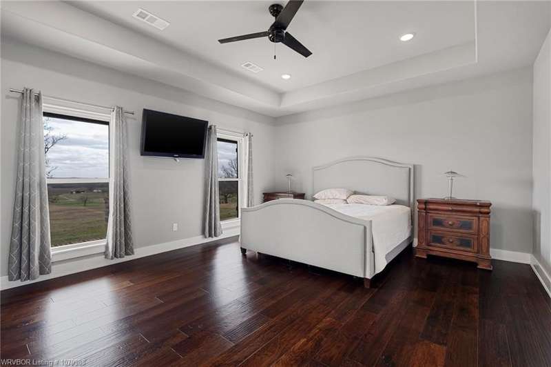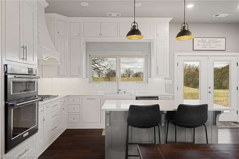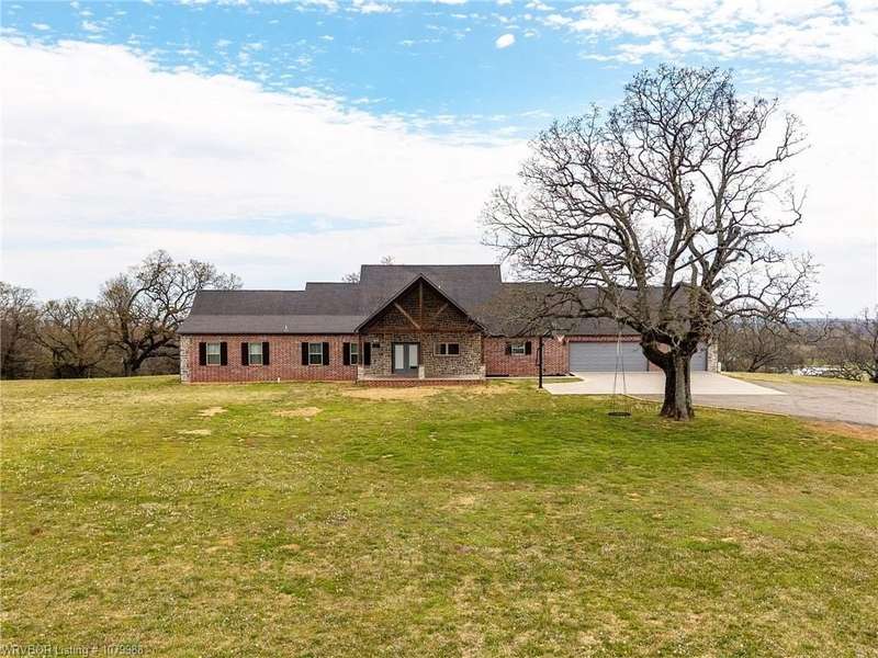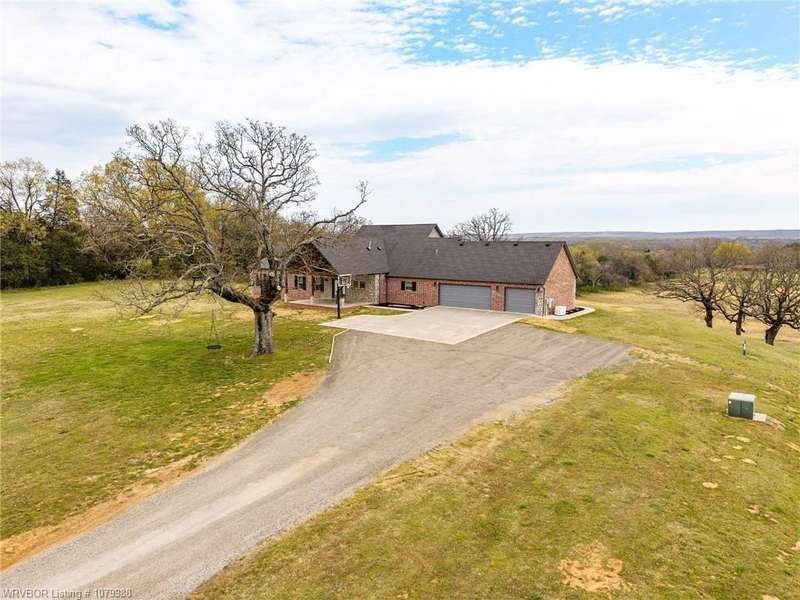 Welcome to your dream retreat! This magnificent two-story ranch home, custom built in 2018 by TEI Construction, boasts four spacious bedrooms and three full bathrooms, perfectly designed for modern living. Crafted from a charming blend of brick, rock, and cedar, this home exudes quality and style. Sitting on 4 gently rolling acres, you’ll enjoy breathtaking views of the Lower Ouachita Mountains that stretch for miles, making every day feel like a vacation. Step inside to discover a bright and airy kitchen that’s sure to impress. Featuring stunning solid marbled quartz countertops, top-of-the-line KitchenAid Professional Series appliances, custom cabinetry, a six-burner gas cooktop, farmhouse sink, and double ovens, it’s a chef’s paradise! The kitchen also includes a pantry that doubles as a secure safe room for your peace of mind. Upstairs, the bonus/flex space perfect for a movie room, gaming space or pool table. The luxurious master bathroom offers a spa-like experience with a spacious walk-in shower equipped with dual shower heads, ensuring you start each day refreshed. This home is designed for comfort and efficiency, with spray foam insulation throughout and an encapsulated attic. The Lennox high-efficiency HVAC system, tankless water heater and whole-home generator provide ultimate reliability. Enjoy the convenience of a split bedroom layout, ensuring privacy for everyone in the household. Outside, relax or entertain on your covered front and back porches while soaking in the tranquility of your surroundings. Don’t miss the opportunity to own this exceptional property, where luxury meets serenity. Schedule your private showing today!
