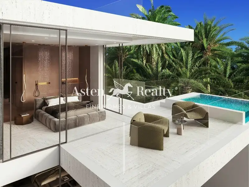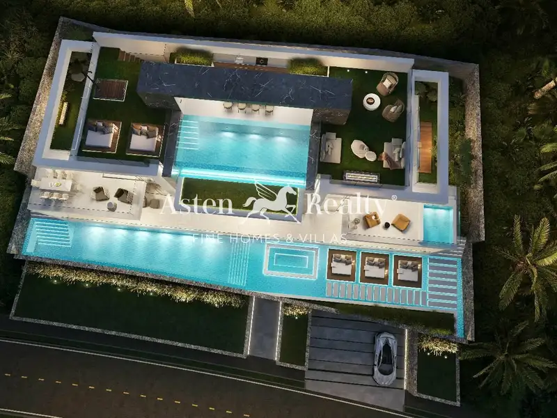 The villa exudes an aura of timeless elegance, embodying a fusion of modernity and classic style that captures the vibrant spirit of the island.