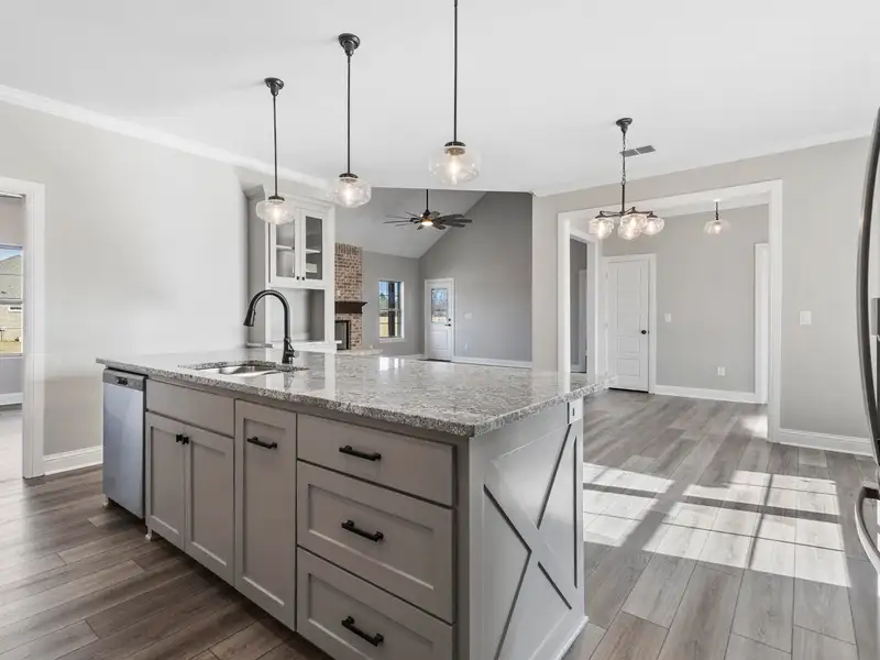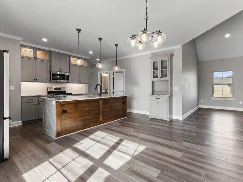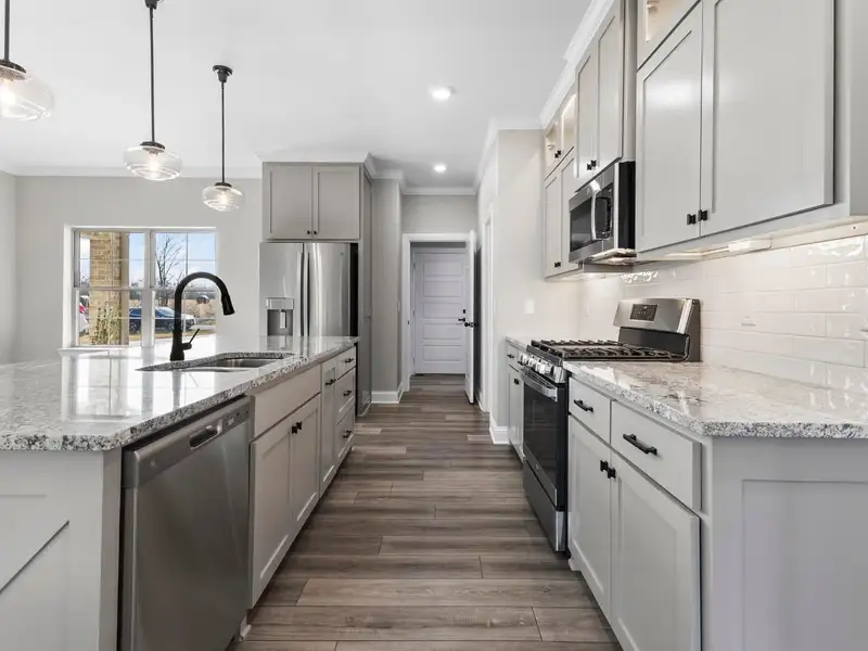 - Granite countertops in kitchen