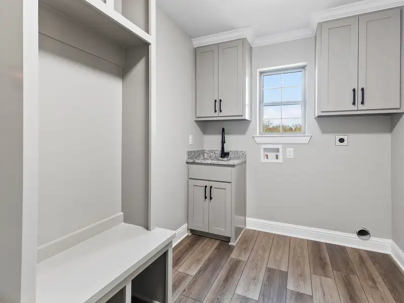 - Large laundry room with built-in bench
