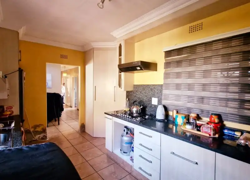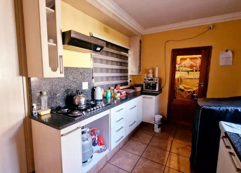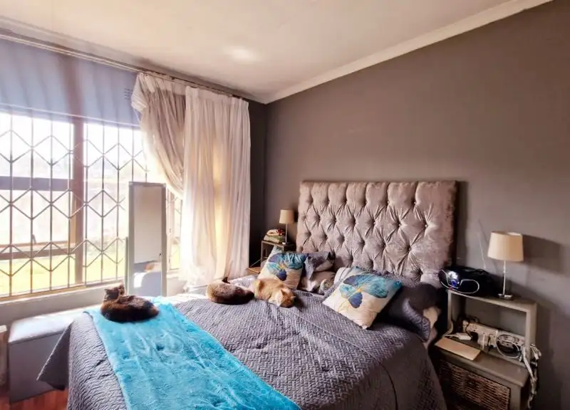 This 3-bedroom, 2-bathroom home offers generous space with two lounges, a dining room, and a functional kitchen. The main bedroom features an en-suite bathroom, and all bedrooms are fitted with laminate flooring. The property includes 2 garages and 1 carport, ensuring ample parking. The backyard features a built-in braai area and a pool that may need some attention—ideal for buyers looking to modernize and make it their own. Additional features include an inverter and solar system to help reduce electricity costs—an excellent bonus for modern living. Conveniently located close to schools, shopping centers, and easy access to the highway. A solid home with great potential in a sought-after area.