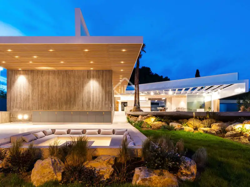 Lucas Fox presents this spectacular and modern villa ready to move into for sale in Vistahermosa. Its design is the work of Subarquitectura, a renowned studio that has left its mark on the world of architecture with iconic infrastructure works. Among his achievements is the plaza and tram stop at the Sergio Cardell roundabout (2006), an award-winning work at the IX Biennial of Spanish Architecture, nominated for the 2009 Mies Van der Rohe awards, and finalist in the Valencian Community awards. , second prize in Lamp Lighting Solutions and with honorable mention at the Balthasar Neumann Biennial in Germany. In addition, it has been selected among the 10 best designs in the world by the Design Museum of London.