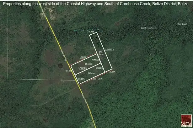 We are delighted to present an exceptional investment opportunity! 77.84 acres of land comprising of 3 Blocks, strategically positioned along the Coastal Road and the Cornhouse Creek, Belize District, Belize. Steeped in natural beauty, property can be developed into commercial ventures, mixed-use, eco-tourism, agricultural development or multi-family development. Acreage offers 1,248.04 ft. along the Coastal Road and 578.48 ft. along Cornhouse Creek providing a year-round freshwater source. Dimensions of the 3 parcels are as follows: 1,248.04 ft. x 1,741.38 ft. x 1,293.18 ft. x 578.48 ft. x 2,516.95 ft. x 2,223.36 ft. Fertile land is in pristine condition and consists mostly of savannah scrub, complemented with a variety of nature’s wildlife. Enjoy the rural countryside, with direct access to the Coastal Road (Manatee Road). The Coastal Road is a vital transportation artery connecting the George Price Highway to the Hummingbird Highway. Property is 13 Miles(+/-) to George Price Highway, 13 Miles(+/-) to La Democracia Village, 9.5 Miles(+/-_ to Gales Point Manatee Village, shops and services. Create and build your own private haven, in a country setting offering more land, better views, privacy and relaxation. Land is timeless and this is your chance to own yours.Contact us today and start a journey towards getting your own dream tropical escape.