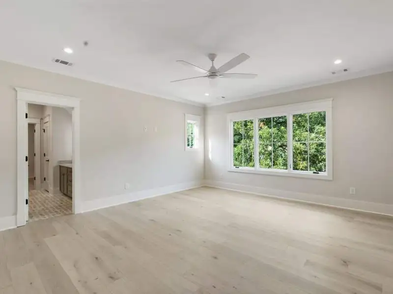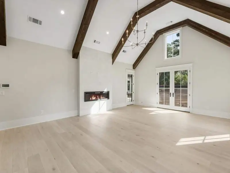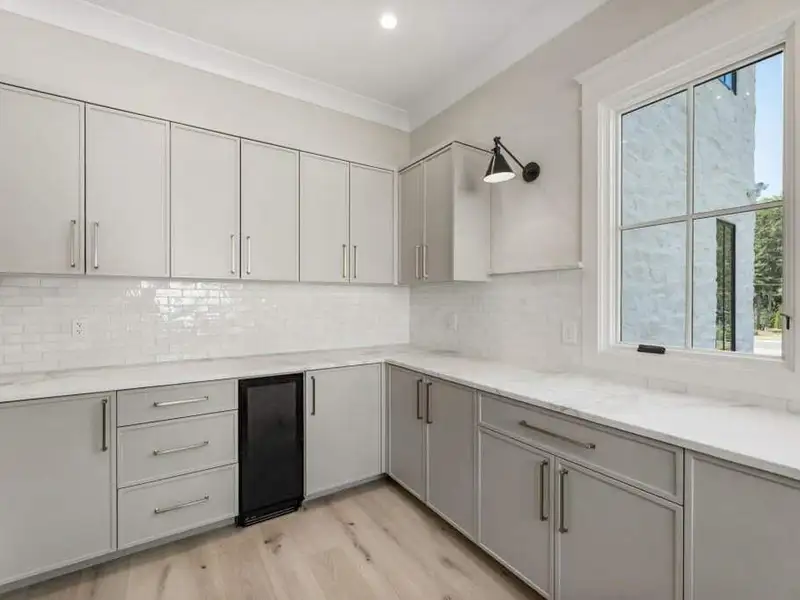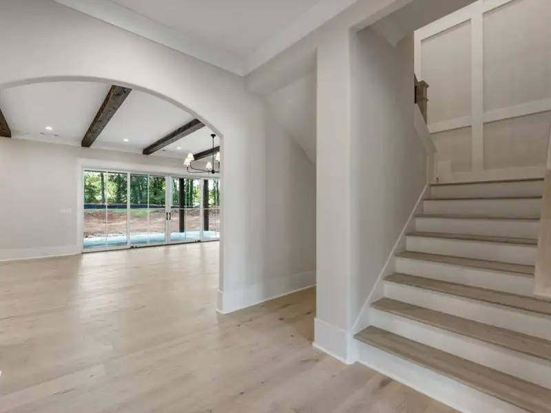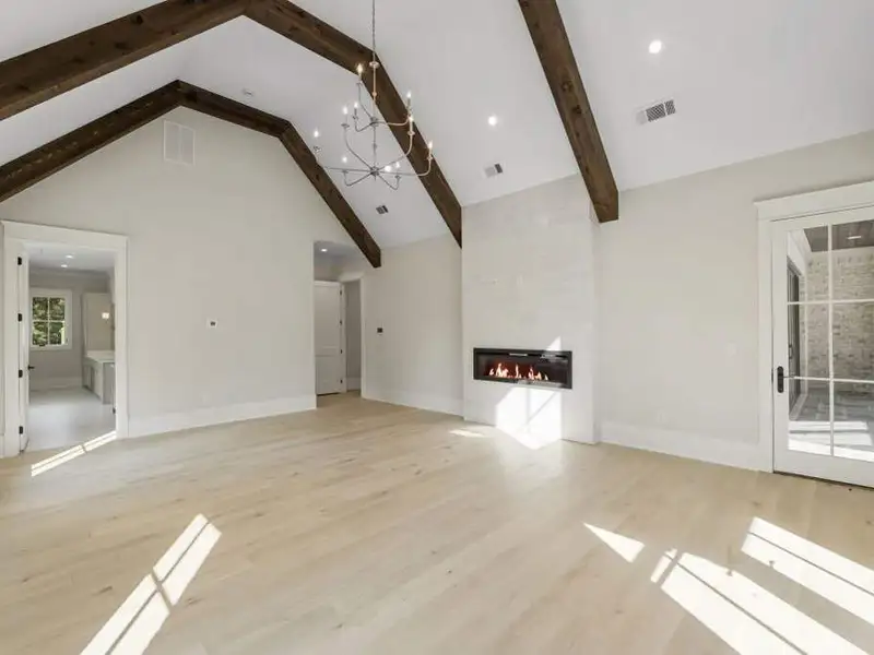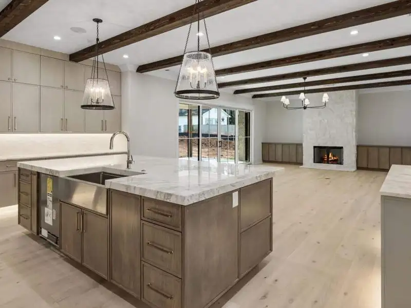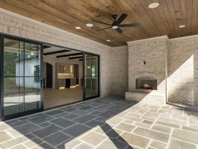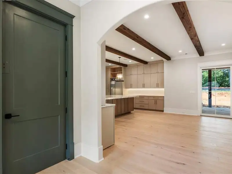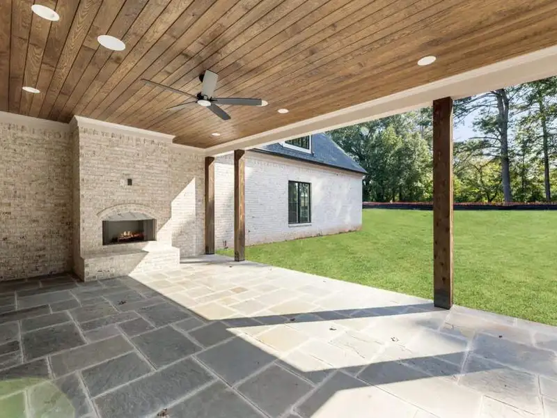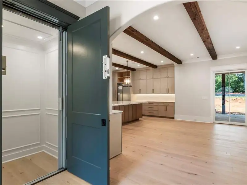 On this quiet street just outside of downtown Alpharetta, enjoy the convenience of a premier location paired with the serenity of a private and level walk out on the main level to the backyard with this gorgeous new construction. This newly built home on just under an acre lot has been thoughtfully designed and beautifully appointed with every upgrade, including a fully installed elevator for effortless access between levels and primary on main level with spacious bedrooms upstairs and three laundry rooms.. The main-level primary suite offers vaulted ceiling with beams and a fireplace as well as access to the backyard and covered porch area. There is abundant storage, and seamless walkout to outdoor living spaces make this residence as functional as it is refined. This elevation is stunning with timeless brick and accented with limestone details and an arched iron entry door sets the tone for enduring craftsmanship from the very first impression. A level driveway leads to the three-car garage with carriage doors, while gas lanterns and cedar columns add warmth and character to the front covered porch. Inside, light-filled rooms with soaring ceilings and rich hardwood floors welcome you. The living room is anchored by a striking 48-inch fireplace and opens to the gourmet kitchen, where custom cabinetry extends to the ceiling, stone countertops shine under designer fixtures, and professional Sub Zero and Wolf-grade appliances make entertaining effortless. A walk-in pantry and butler's area with wine cooler add convenience and charm as well as a scullery featuring additional beverage refrigerator, dishwasher and lots of extra counter and cabinet space for your entertaining and storage needs. The main-level primary suite features vaulted ceilings with cedar beams and a spa-like bath with soaking tub, oversized glass shower, and expansive custom closet. Three car garage with expansive mud room and laundry space. Upstairs, three bedrooms each include private en-suite baths featuring custom and stunning tile patterns with walk-in closets and laundry room. A fourth bedroom or suite is currently envisioned as a flex space with full bathroom offering versatility and can easily serve as another bedroom if desired. Outdoor living is a highlight with a covered back porch featuring a wood-burning fireplace, cedar beam mantle, and peaceful views of the landscaped, level backyard. A pool permit has already been applied for and may be priced out for the new homeowner and their design and dreams for outdoor living space. With refined finishes throughout, smart home wiring, and energy-efficient systems, this home blends luxury, livability, and location just moments from the heart of downtown Alpharetta. *Virtual landscaping/grass added to images.