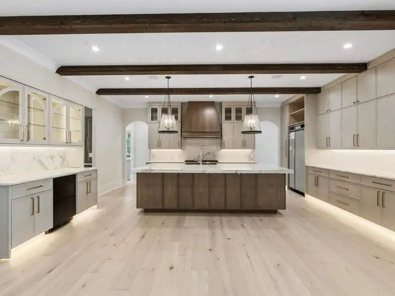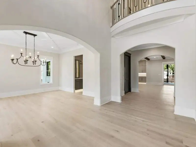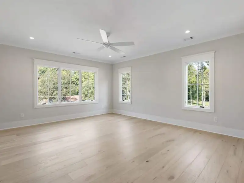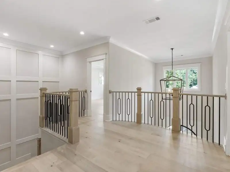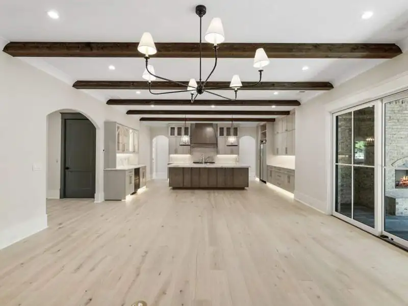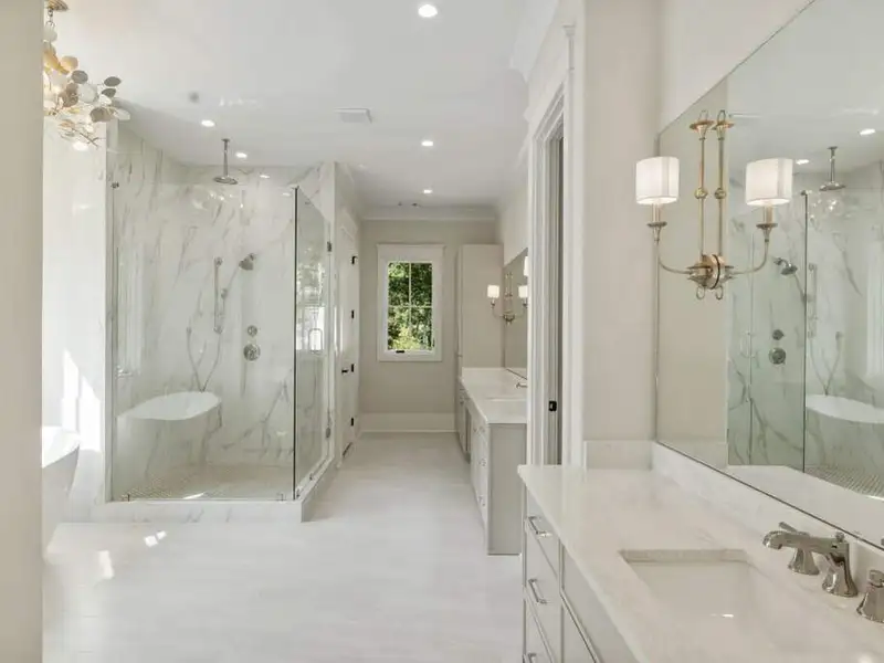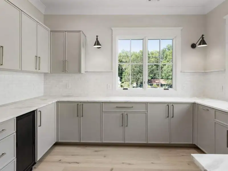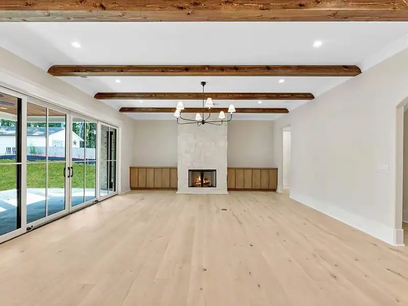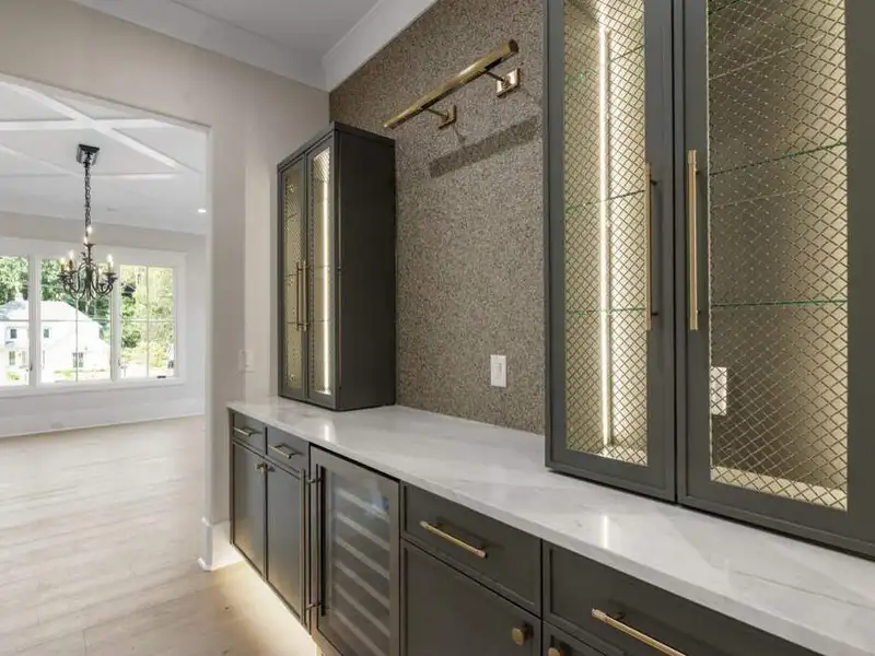 On this quiet street just outside of downtown Alpharetta, enjoy the convenience of a premier location paired with the serenity of a private and level walk out on the main level to the backyard with this gorgeous new construction. This newly built home on just under an acre lot has been thoughtfully designed and beautifully appointed with every upgrade, including a fully installed elevator for effortless access between levels and primary on main level with spacious bedrooms upstairs and three laundry rooms.. The main-level primary suite offers vaulted ceiling with beams and a fireplace as well as access to the backyard and covered porch area. There is abundant storage, and seamless walkout to outdoor living spaces make this residence as functional as it is refined. This elevation is stunning with timeless brick and accented with limestone details and an arched iron entry door sets the tone for enduring craftsmanship from the very first impression. A level driveway leads to the three-car garage with carriage doors, while gas lanterns and cedar columns add warmth and character to the front covered porch. Inside, light-filled rooms with soaring ceilings and rich hardwood floors welcome you. The living room is anchored by a striking 48-inch fireplace and opens to the gourmet kitchen, where custom cabinetry extends to the ceiling, stone countertops shine under designer fixtures, and professional Sub Zero and Wolf-grade appliances make entertaining effortless. A walk-in pantry and butler's area with wine cooler add convenience and charm as well as a scullery featuring additional beverage refrigerator, dishwasher and lots of extra counter and cabinet space for your entertaining and storage needs. The main-level primary suite features vaulted ceilings with cedar beams and a spa-like bath with soaking tub, oversized glass shower, and expansive custom closet. Three car garage with expansive mud room and laundry space. Upstairs, three bedrooms each include private en-suite baths featuring custom and stunning tile patterns with walk-in closets and laundry room. A fourth bedroom or suite is currently envisioned as a flex space with full bathroom offering versatility and can easily serve as another bedroom if desired. Outdoor living is a highlight with a covered back porch featuring a wood-burning fireplace, cedar beam mantle, and peaceful views of the landscaped, level backyard. A pool permit has already been applied for and may be priced out for the new homeowner and their design and dreams for outdoor living space. With refined finishes throughout, smart home wiring, and energy-efficient systems, this home blends luxury, livability, and location just moments from the heart of downtown Alpharetta. *Virtual landscaping/grass added to images.