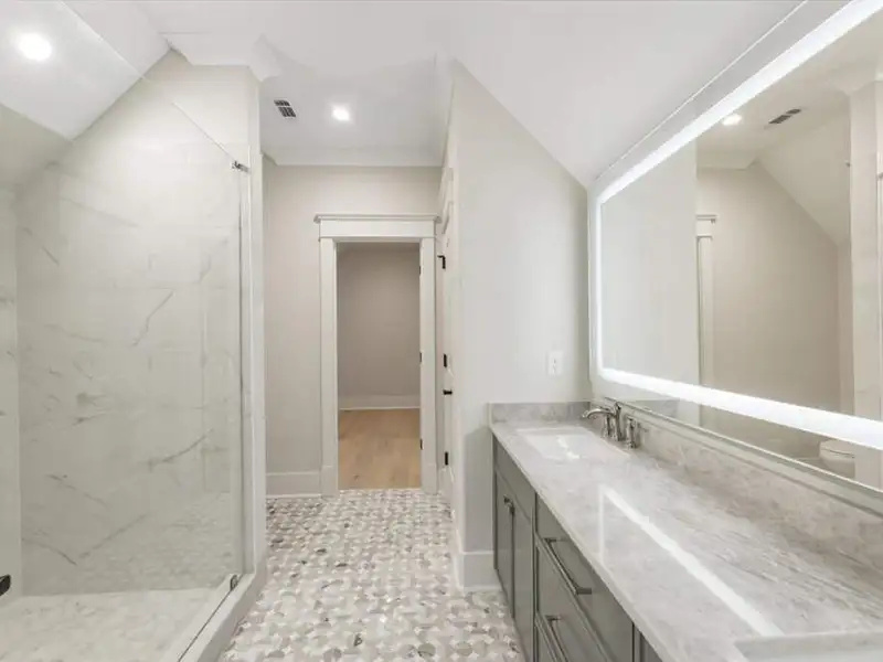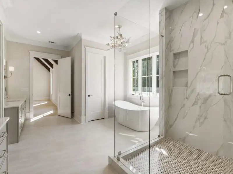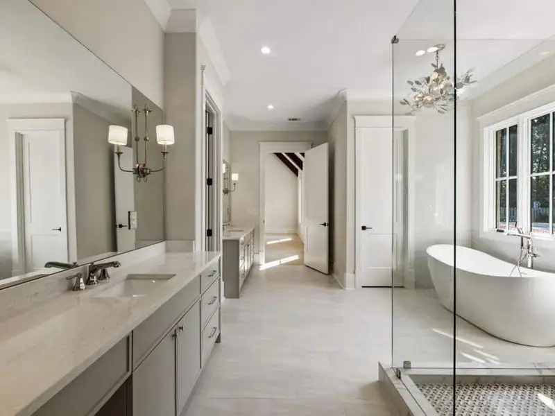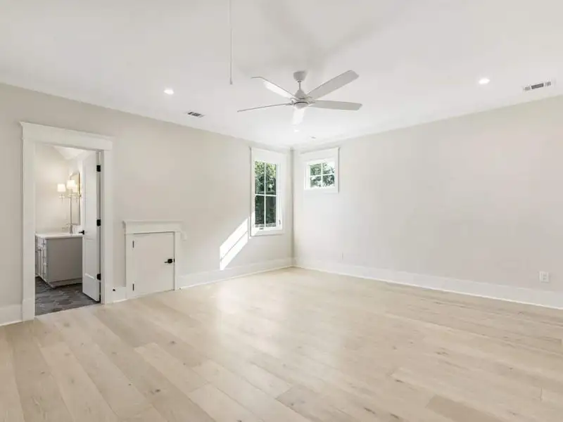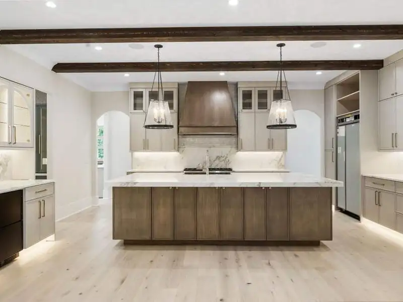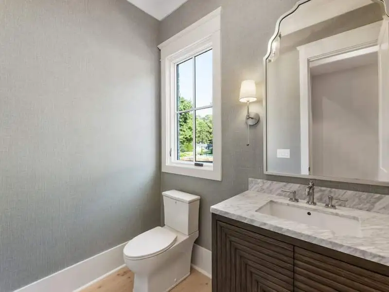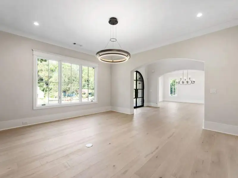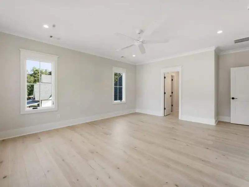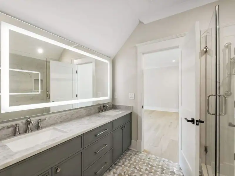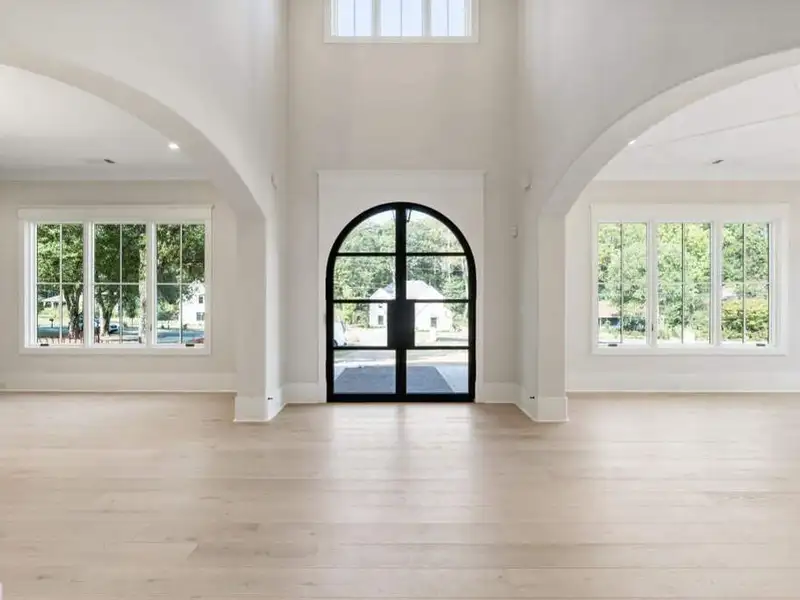 On this quiet street just outside of downtown Alpharetta, enjoy the convenience of a premier location paired with the serenity of a private and level walk out on the main level to the backyard with this gorgeous new construction. This newly built home on just under an acre lot has been thoughtfully designed and beautifully appointed with every upgrade, including a fully installed elevator for effortless access between levels and primary on main level with spacious bedrooms upstairs and three laundry rooms.. The main-level primary suite offers vaulted ceiling with beams and a fireplace as well as access to the backyard and covered porch area. There is abundant storage, and seamless walkout to outdoor living spaces make this residence as functional as it is refined. This elevation is stunning with timeless brick and accented with limestone details and an arched iron entry door sets the tone for enduring craftsmanship from the very first impression. A level driveway leads to the three-car garage with carriage doors, while gas lanterns and cedar columns add warmth and character to the front covered porch. Inside, light-filled rooms with soaring ceilings and rich hardwood floors welcome you. The living room is anchored by a striking 48-inch fireplace and opens to the gourmet kitchen, where custom cabinetry extends to the ceiling, stone countertops shine under designer fixtures, and professional Sub Zero and Wolf-grade appliances make entertaining effortless. A walk-in pantry and butler's area with wine cooler add convenience and charm as well as a scullery featuring additional beverage refrigerator, dishwasher and lots of extra counter and cabinet space for your entertaining and storage needs. The main-level primary suite features vaulted ceilings with cedar beams and a spa-like bath with soaking tub, oversized glass shower, and expansive custom closet. Three car garage with expansive mud room and laundry space. Upstairs, three bedrooms each include private en-suite baths featuring custom and stunning tile patterns with walk-in closets and laundry room. A fourth bedroom or suite is currently envisioned as a flex space with full bathroom offering versatility and can easily serve as another bedroom if desired. Outdoor living is a highlight with a covered back porch featuring a wood-burning fireplace, cedar beam mantle, and peaceful views of the landscaped, level backyard. A pool permit has already been applied for and may be priced out for the new homeowner and their design and dreams for outdoor living space. With refined finishes throughout, smart home wiring, and energy-efficient systems, this home blends luxury, livability, and location just moments from the heart of downtown Alpharetta. *Virtual landscaping/grass added to images.