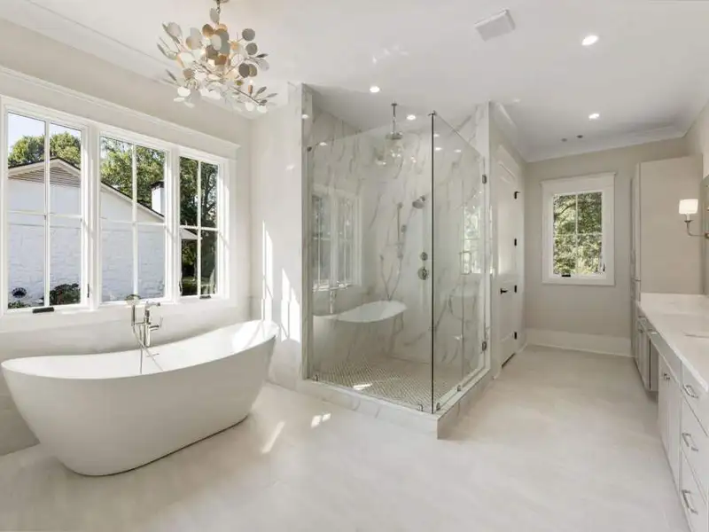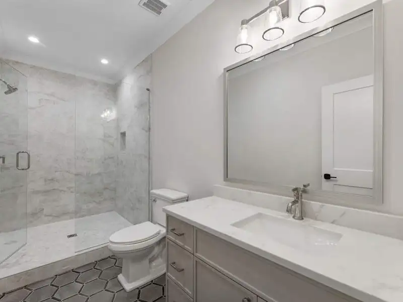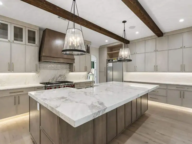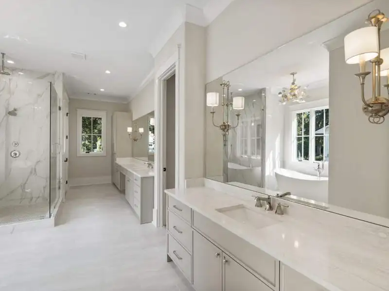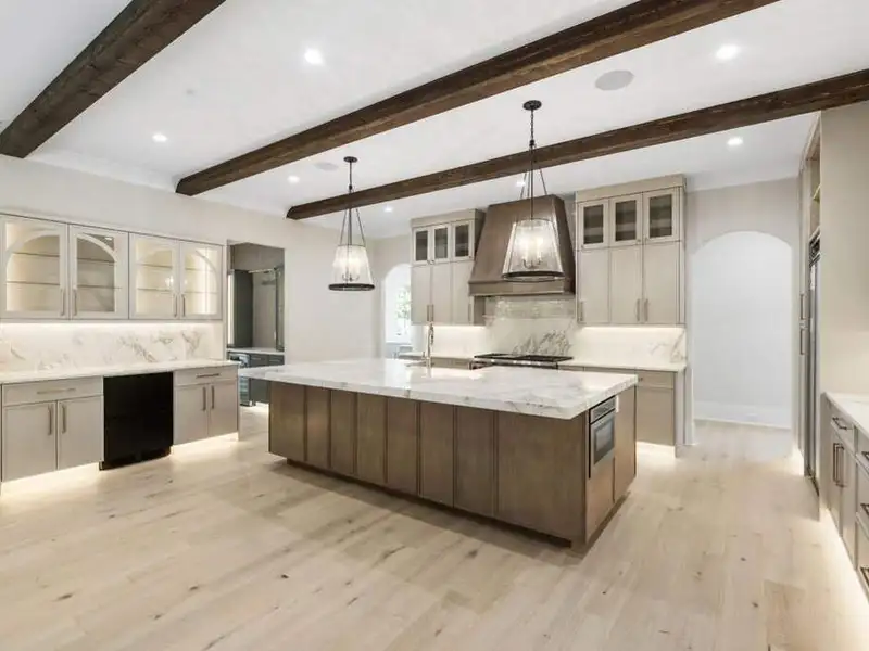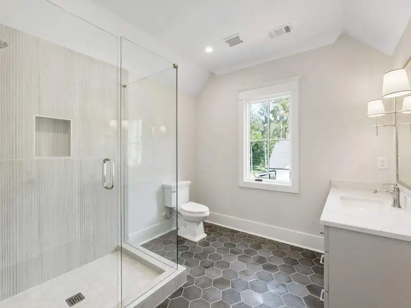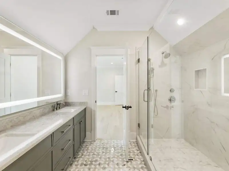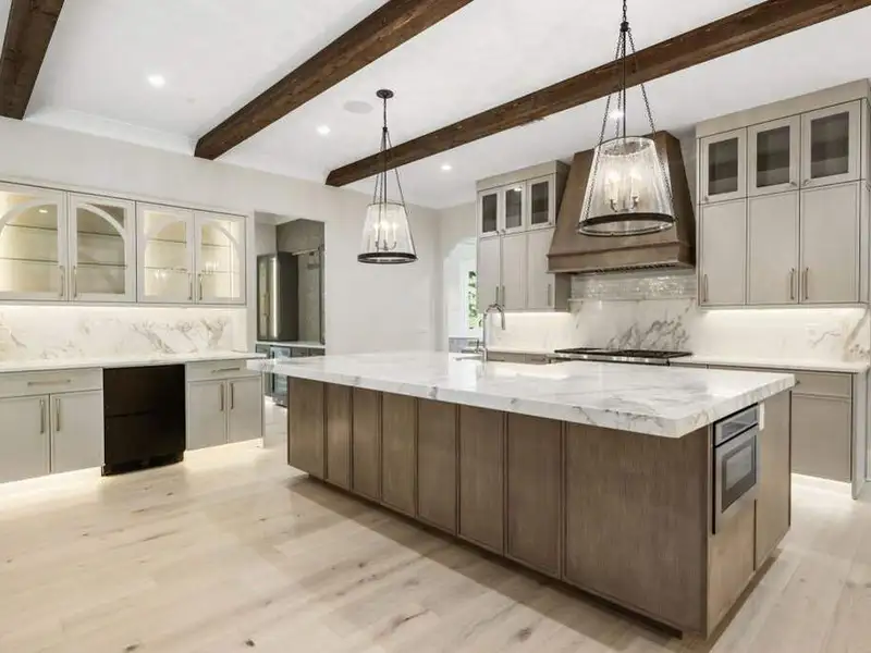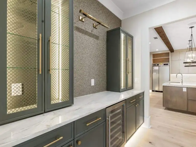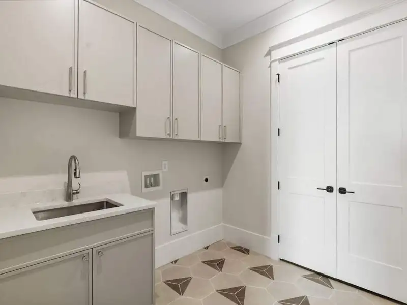 On this quiet street just outside of downtown Alpharetta, enjoy the convenience of a premier location paired with the serenity of a private and level walk out on the main level to the backyard with this gorgeous new construction. This newly built home on just under an acre lot has been thoughtfully designed and beautifully appointed with every upgrade, including a fully installed elevator for effortless access between levels and primary on main level with spacious bedrooms upstairs and three laundry rooms.. The main-level primary suite offers vaulted ceiling with beams and a fireplace as well as access to the backyard and covered porch area. There is abundant storage, and seamless walkout to outdoor living spaces make this residence as functional as it is refined. This elevation is stunning with timeless brick and accented with limestone details and an arched iron entry door sets the tone for enduring craftsmanship from the very first impression. A level driveway leads to the three-car garage with carriage doors, while gas lanterns and cedar columns add warmth and character to the front covered porch. Inside, light-filled rooms with soaring ceilings and rich hardwood floors welcome you. The living room is anchored by a striking 48-inch fireplace and opens to the gourmet kitchen, where custom cabinetry extends to the ceiling, stone countertops shine under designer fixtures, and professional Sub Zero and Wolf-grade appliances make entertaining effortless. A walk-in pantry and butler's area with wine cooler add convenience and charm as well as a scullery featuring additional beverage refrigerator, dishwasher and lots of extra counter and cabinet space for your entertaining and storage needs. The main-level primary suite features vaulted ceilings with cedar beams and a spa-like bath with soaking tub, oversized glass shower, and expansive custom closet. Three car garage with expansive mud room and laundry space. Upstairs, three bedrooms each include private en-suite baths featuring custom and stunning tile patterns with walk-in closets and laundry room. A fourth bedroom or suite is currently envisioned as a flex space with full bathroom offering versatility and can easily serve as another bedroom if desired. Outdoor living is a highlight with a covered back porch featuring a wood-burning fireplace, cedar beam mantle, and peaceful views of the landscaped, level backyard. A pool permit has already been applied for and may be priced out for the new homeowner and their design and dreams for outdoor living space. With refined finishes throughout, smart home wiring, and energy-efficient systems, this home blends luxury, livability, and location just moments from the heart of downtown Alpharetta. *Virtual landscaping/grass added to images.