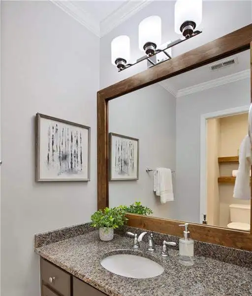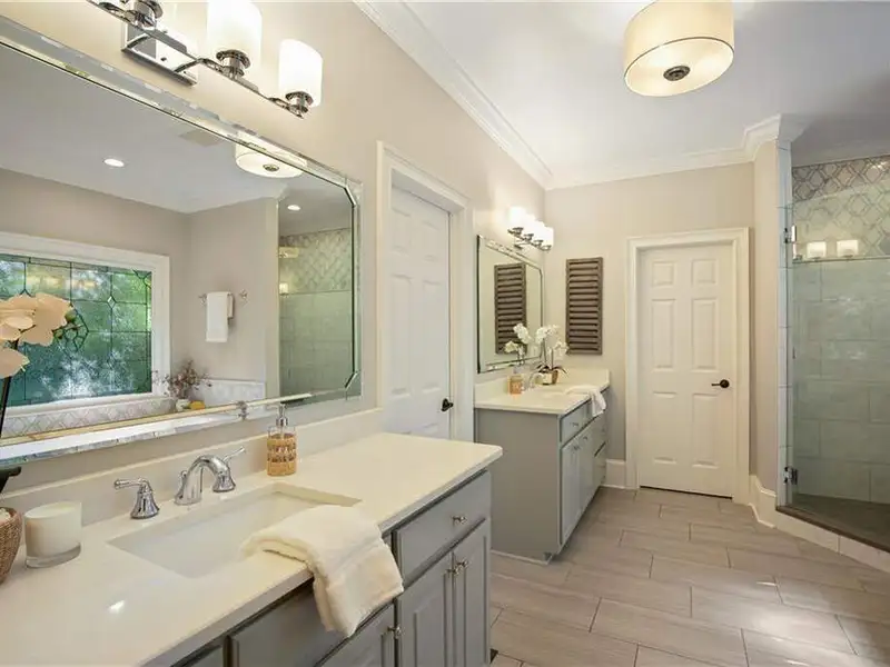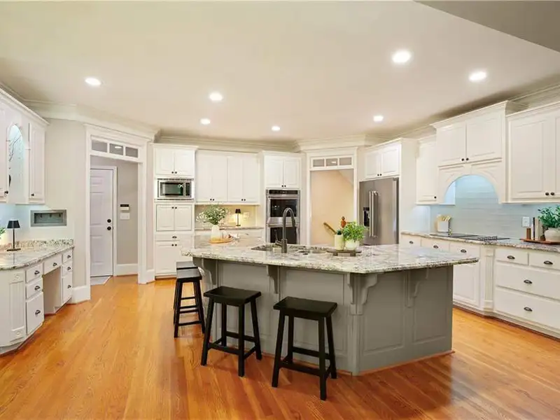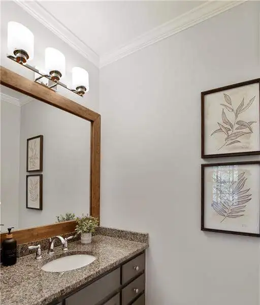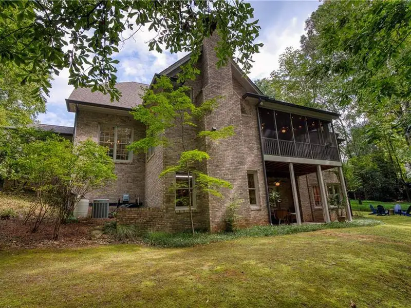 LUXURY LIVING IN WHITE COLUMNS W/ PRIMARY ON MAIN & DREAMY SCREENED PORCH. Nestled on a private, wooded 1.17-acre lot in the prestigious White Columns golf community, this timeless 4-sided brick traditional offers the perfect balance of classic elegance, modern updates, and a premier lifestyle. From the welcoming covered front entry to the serene, screened porch overlooking nature, every detail has been thoughtfully designed for refined living and easy entertaining. Step into a dramatic two-story foyer highlighted by elegant millwork and a wide hardwood staircase. The light-filled open floor plan showcases gleaming hardwood floors, oversized windows, and tranquil wooded views. A private office with extensive trim work and French doors is ideal for working from home, while the banquet-sized dining room sets the stage for memorable gatherings. The soaring two-story great room impresses with a wall of windows, custom built-ins, a cozy fireplace and French doors to the screened porch. The updated chef's kitchen features painted cabinetry, granite countertops, a decorative glass tile backsplash, newer stainless-steel appliances, double ovens, an expansive island with seating for six, a walk-in pantry, and both a butler's pantry and desk or coffee nook. Flow seamlessly into the vaulted keeping room with built-ins, a stone fireplace, and access to the screened porch, creating an inviting space for everyday living and entertaining. The screened porch with ceiling fans is the ultimate outdoor living room, perfect for entertaining, dining al fresco or relaxing while enjoying the wooded backdrop. The generous primary suite on main offers a peaceful retreat with a trey ceiling, serene sitting area, dual walk-in closets, and a renovated, spa-inspired bath with quartz countertops, a frameless glass shower, and luxurious soaking tub. Upstairs you'll find three spacious secondary bedrooms, including one with an en suite bath and two with a shared bath featuring separate vanity areas. A bonus/flex room provides the perfect spot for a study nook, playroom, or fitness space, while a huge walk-in linen closet and walk-in attic storage offer plenty of organizational space. The unfinished, window-filled, daylight terrace level delivers endless possibilities! It spans over 2,800 square feet with high ceilings and walk-out access to the covered patio and backyard. A rare blank canvas, it's easily transformed into your dream space - whether an entertainment area with bar/kitchen, media room, home gym, guest suite, workshop, or wine cellar... White Columns Country Club members enjoy world-class amenities, including a Tom Fazio-designed championship golf course, newly renovated pool complex with cabanas and splash park, complete tennis and pickleball programs, clubhouse with multiple dining options, a fitness center, and an active social calendar. Don't miss this rare opportunity to experience privacy, luxurious living and an exceptional lifestyle at 711 Hallbrook Court.