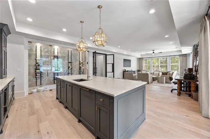 - Gourmet kitchen with custom island and wine fridge