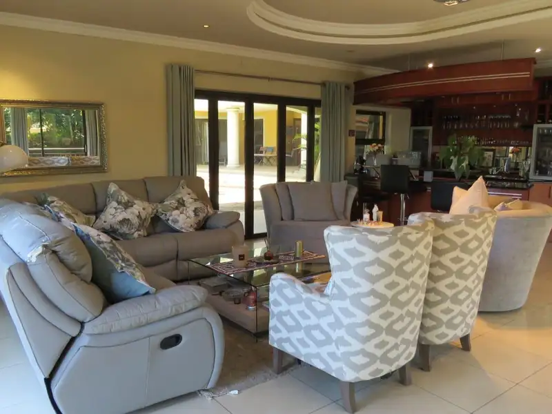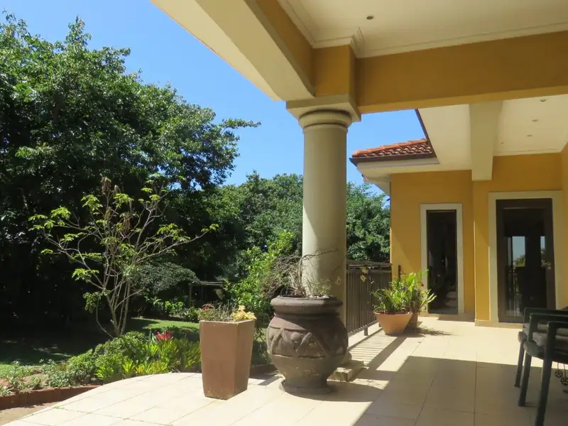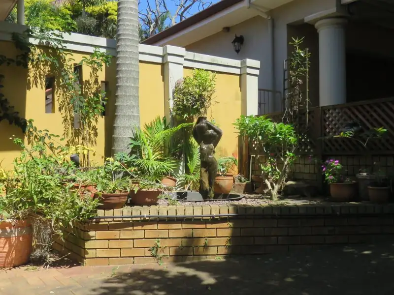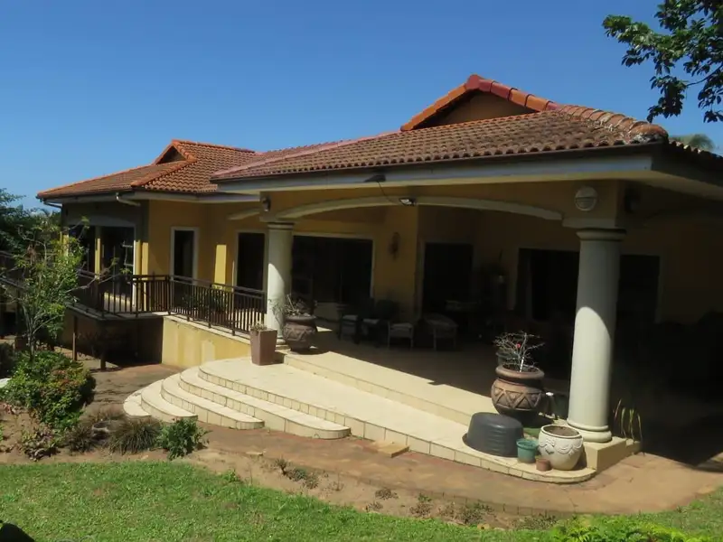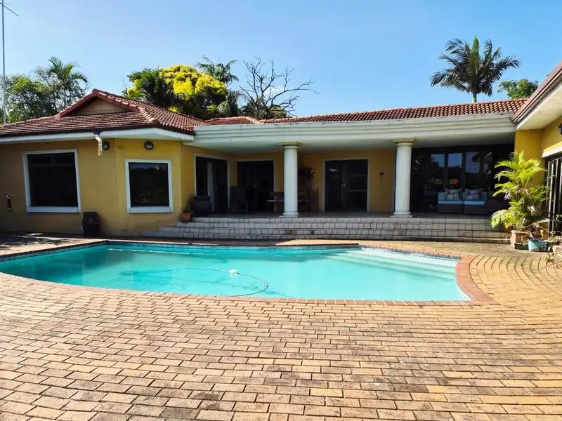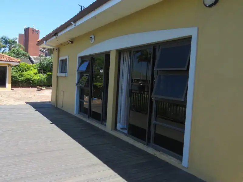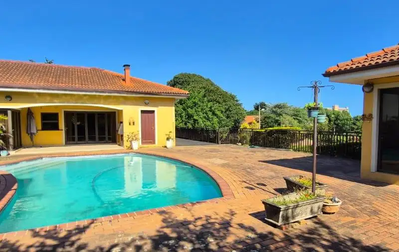 Set on 2023 square metres of prime ground, central Amanzimtoti, this superb house is just over 500 square metres under roof. Located on a prime corner plot commanding views from four other roads, prime position. As you enter through the pillared electric gates, the first thing that will impress you is the wide, spacious driveway leading to a three car carport and triple garage. You enter the house into a small impressive entrance hall and there on your left is the cinema room or tv room and across the passageway is the breakfast room, with floor to ceiling windows overlooking the wrap-around patio and super swimming pool. Adjoining this room is a gourmet kitchen that is a Chef's delight, with a built-in coffee machine, beautifully fitted out, with large scullery, offering lots of storage and functionality for all your culinary requirements. Further into the house, there are four King sized bedrooms, two en-suite with dressing areas and one of the three bathrooms is located in the passageway conveniently located for your guests. The main bedroom is quite spectacular due to its size and shape and a gorgeous circular bath in the en-suite. This room also offers an entrance to the wrap-around balcony and swimming pool, plus distant sea views. The next room to the cinema room is a large formal dining room, with an exquisite chandelier and has access to the lovely tropical garden. In this room are double designer doors opening into a large formal lounge, with floor to ceiling windows that open out onto the wrap-around balcony and swimming pool and distant sea views. Guess what! This isn't all. From the scullery is a door to the outside leading to a spacious one bedroom flat, offering you a residual income, should you desire or a teen pad or Granny flat. As mentioned, there is a large wrap-around balcony off all the rooms except the cinema room.The house is connected to three phase electricity, offering superior power for your bigger appliances or industrial motors. A special feature of this wonderful property is the outside Jacuzzi room, by the swimming pool, specially designed for private parties or just for yourself. The whole property is beautifully walled and security is the key. If this home is something you would like or have dreamed of, give me a call and I will arrange an appointment to view.