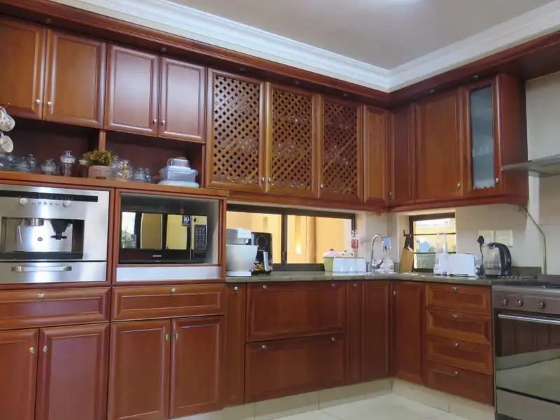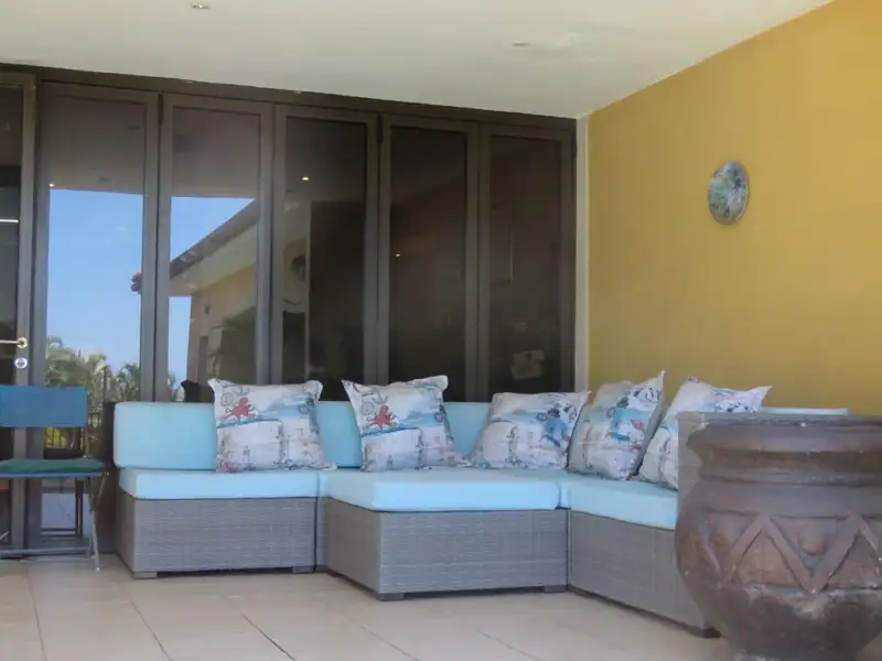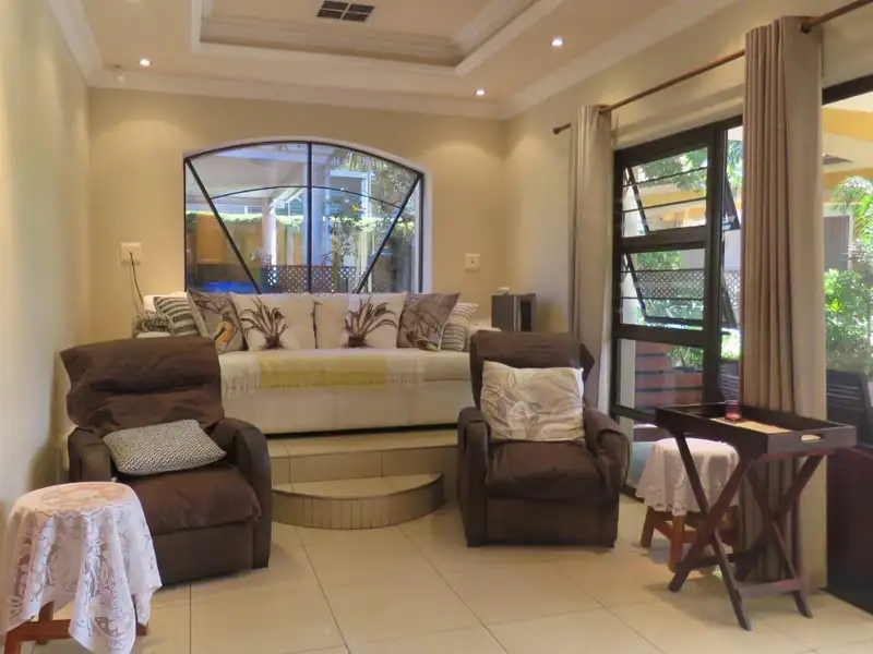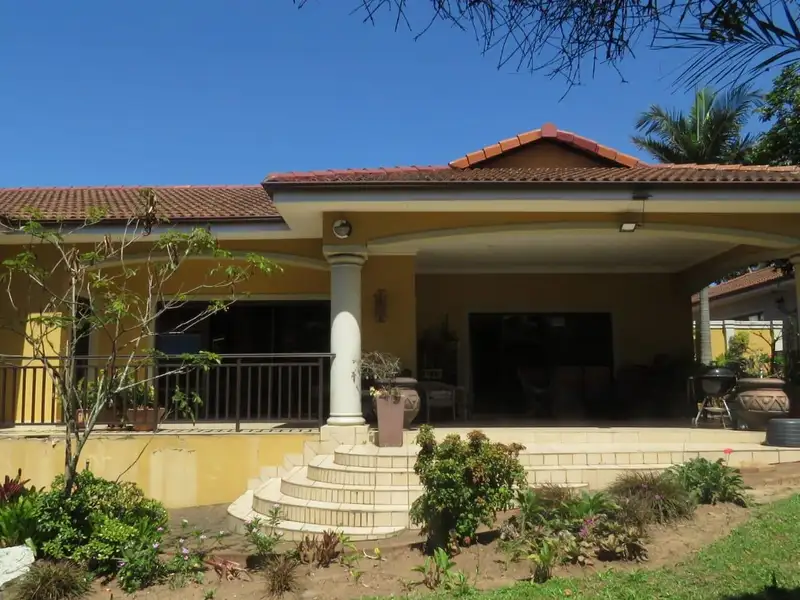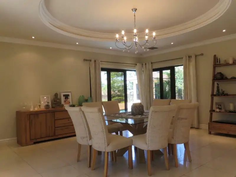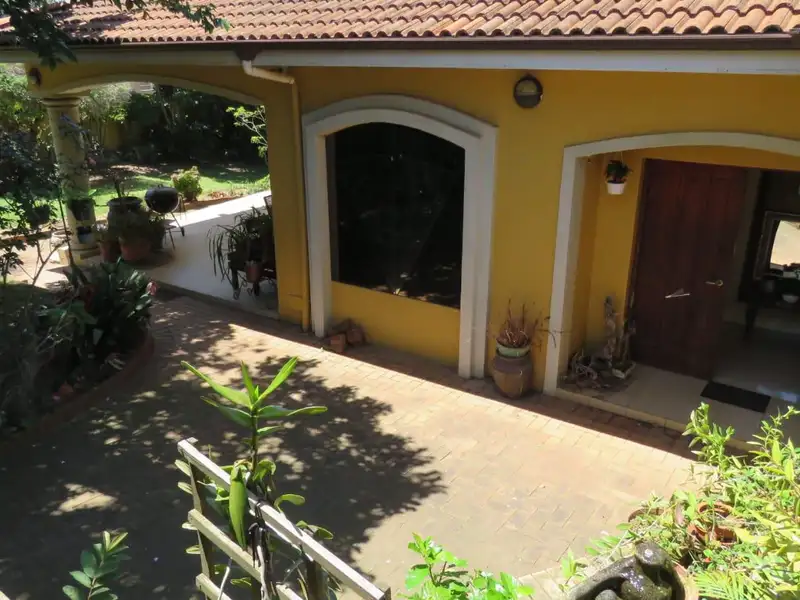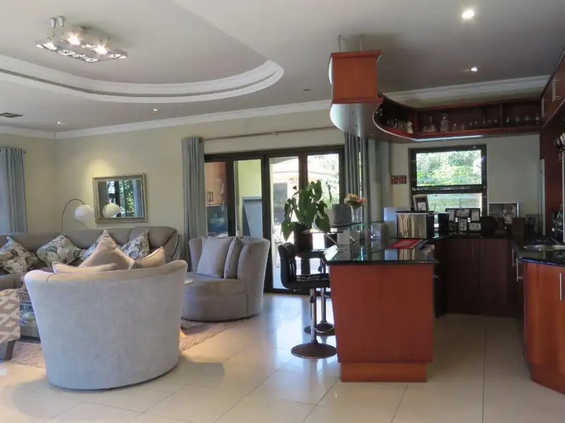 Set on 2023 square metres of prime ground, central Amanzimtoti, this superb house is just over 500 square metres under roof. Located on a prime corner plot commanding views from four other roads, prime position. As you enter through the pillared electric gates, the first thing that will impress you is the wide, spacious driveway leading to a three car carport and triple garage. You enter the house into a small impressive entrance hall and there on your left is the cinema room or tv room and across the passageway is the breakfast room, with floor to ceiling windows overlooking the wrap-around patio and super swimming pool. Adjoining this room is a gourmet kitchen that is a Chef's delight, with a built-in coffee machine, beautifully fitted out, with large scullery, offering lots of storage and functionality for all your culinary requirements. Further into the house, there are four King sized bedrooms, two en-suite with dressing areas and one of the three bathrooms is located in the passageway conveniently located for your guests. The main bedroom is quite spectacular due to its size and shape and a gorgeous circular bath in the en-suite. This room also offers an entrance to the wrap-around balcony and swimming pool, plus distant sea views. The next room to the cinema room is a large formal dining room, with an exquisite chandelier and has access to the lovely tropical garden. In this room are double designer doors opening into a large formal lounge, with floor to ceiling windows that open out onto the wrap-around balcony and swimming pool and distant sea views. Guess what! This isn't all. From the scullery is a door to the outside leading to a spacious one bedroom flat, offering you a residual income, should you desire or a teen pad or Granny flat. As mentioned, there is a large wrap-around balcony off all the rooms except the cinema room.The house is connected to three phase electricity, offering superior power for your bigger appliances or industrial motors. A special feature of this wonderful property is the outside Jacuzzi room, by the swimming pool, specially designed for private parties or just for yourself. The whole property is beautifully walled and security is the key. If this home is something you would like or have dreamed of, give me a call and I will arrange an appointment to view.