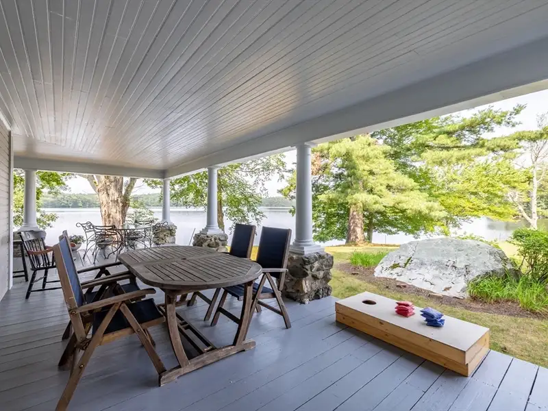 - Wrap-around porch overlooking pond