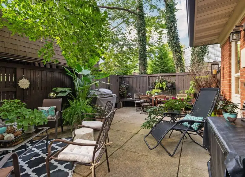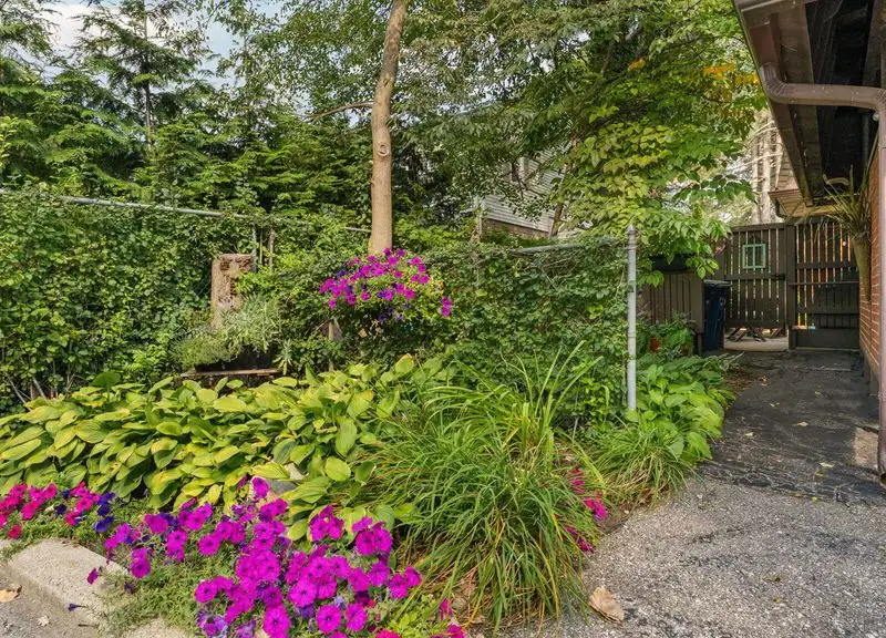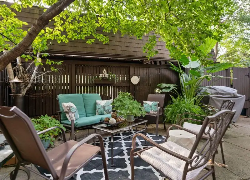 - Private fenced patio with flowers