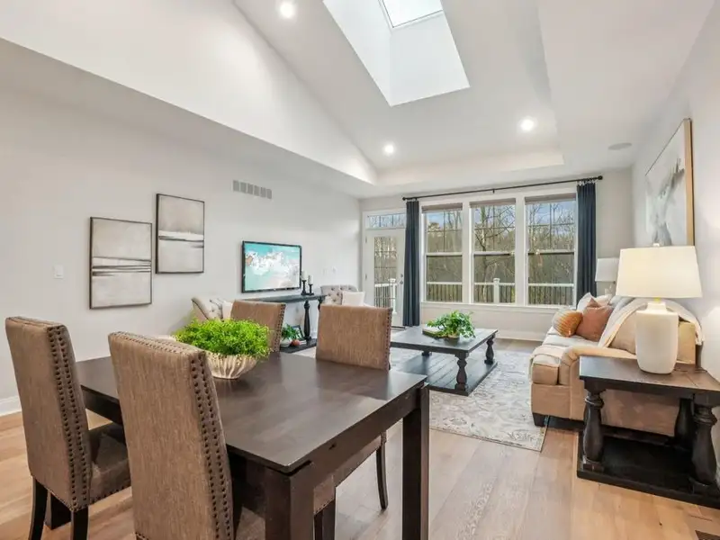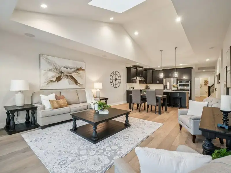 - Modern open-concept design with custom lighting