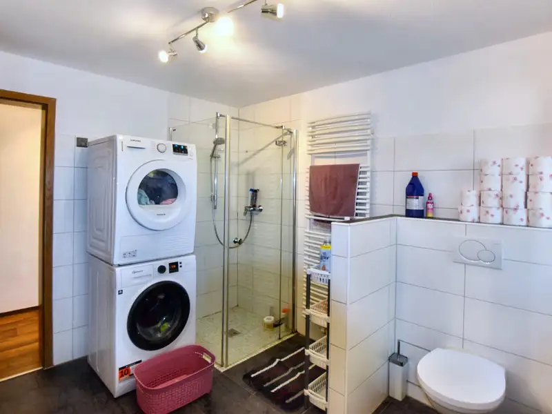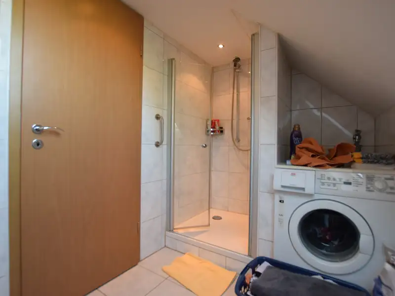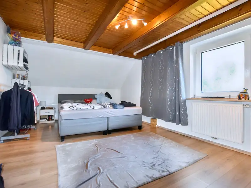 At a glance, the property offers a clear floor plan: On the first floor there are four rooms, a kitchen and a bathroom with shower. The floor coverings are made of PVC and tiles; there is also a water-bearing stove on the first floor with the option of connecting another stove. The upper floor has a similar layout to the first floor, also with four rooms and a storage room, a bathroom with shower and window, and the floor coverings are made of PVC or tiles. The top floor has an open kitchen, three rooms and a storage room, a bathroom with shower and floor coverings made of laminate, parquet or tiles. The windows here are double-glazed plastic. The balcony is covered and offers a view of the greenery.