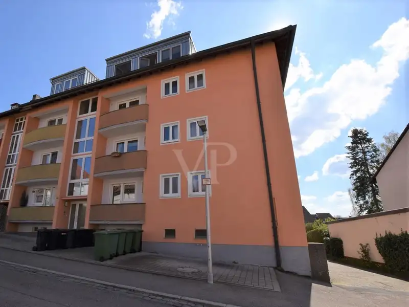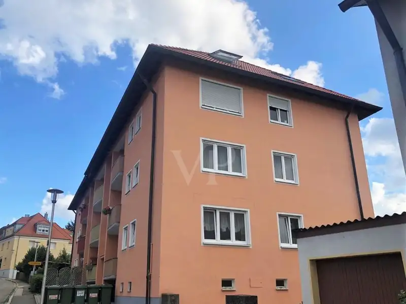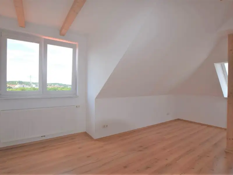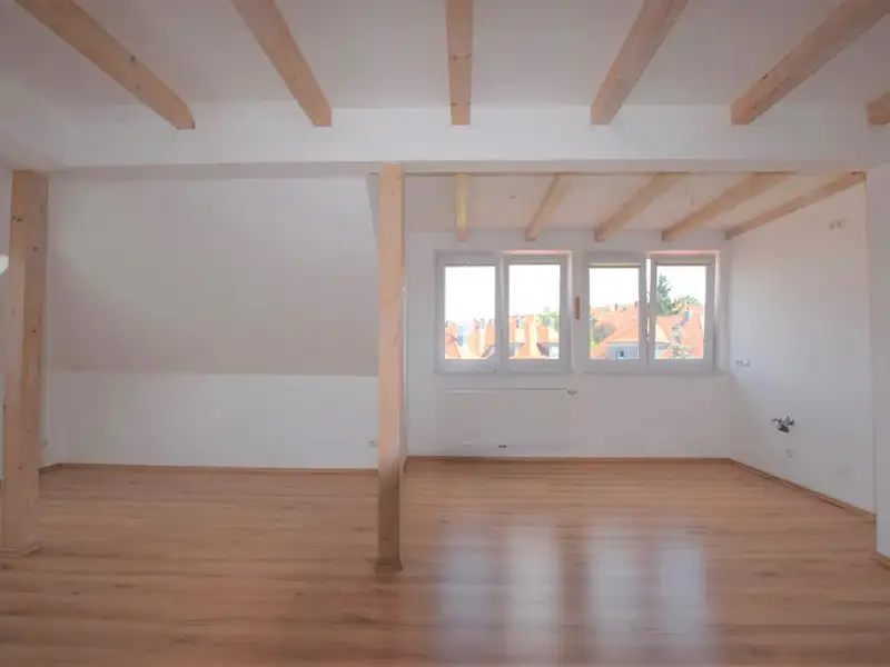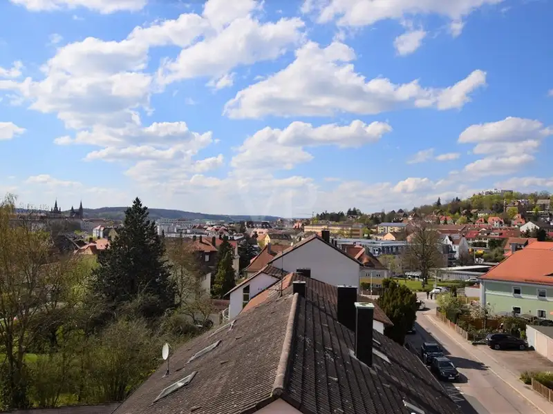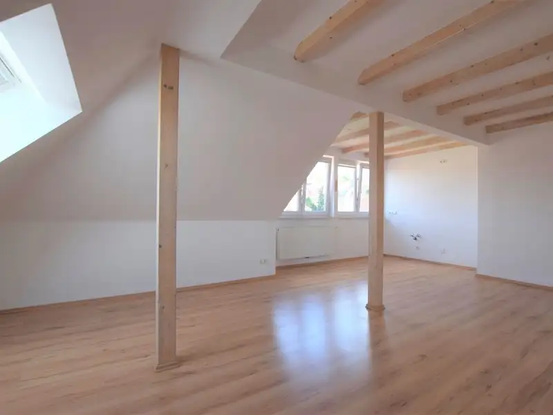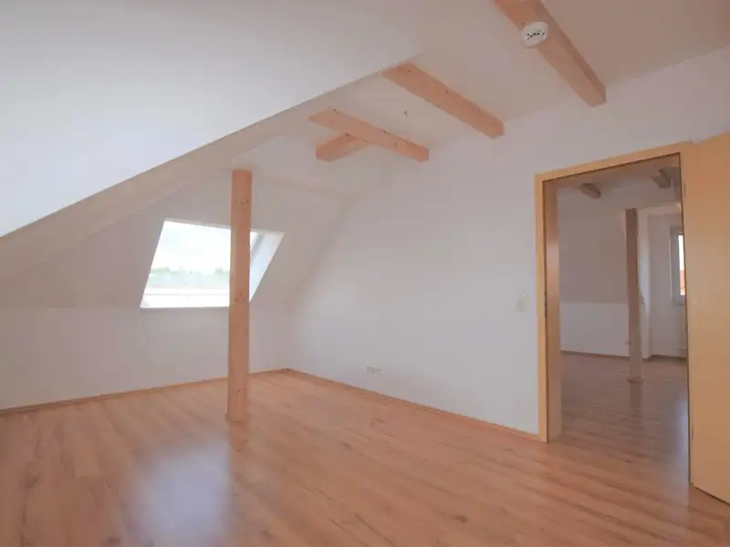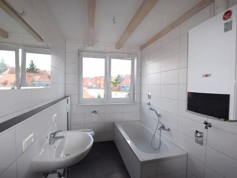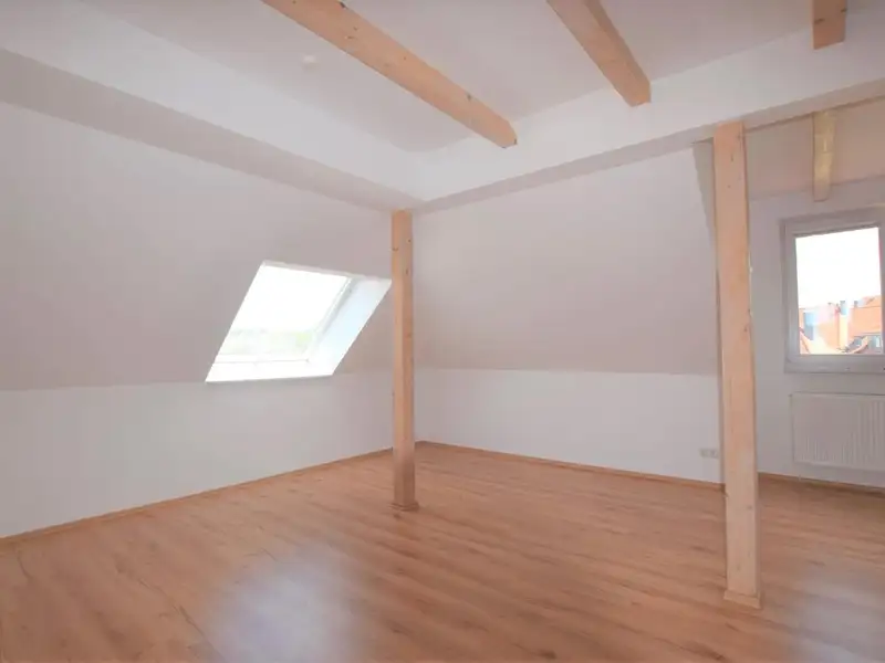 The offered 3-room apartment is located in the attic of an apartment building built in 1960 with a total of eight parties. The attic was completely rebuilt in 2013. The roof truss including roofing was renewed, the insulation was implemented according to energy requirements, insulating glass windows were installed and the dormers were leaded in a high-quality way. The apartment was built to KfW standard and is perfect for singles, couples or capital investors. The residential complex is located in a quiet side street near the city center. Shopping facilities for daily needs, kindergarten and schools, as well as the university and the engineering school are within walking distance. The bright staircase leads upstairs to the attic. From the entrance area you enter the open living and dining area with open kitchen area. The dormer as well as the skylight to the northeast and west flood the spacious room with plenty of daylight. In addition, to the west you enjoy a fantastic view of the city and your churches. Furthermore, the apartment has two spacious bedrooms, which can also be used as a study or guest room, as well as a daylight bathroom. The bathroom is equipped with shower, bathtub, washing machine connection, toilet and sink. Storage space is located in the attic. The associated slide-in staircase is located directly in the living area. The unit has a modern design. Thus, the floors are laid with easy-care laminate in wood look. The bathroom is tiled floor-to-ceiling in white and anthracite. The doors and frames are veneered in light and provide together with the exposed ceiling beams for a cozy living ambience. The unit is heated by means of a Wolf gas-fired single boiler. Separate meters for consumption-based billing of heating, water and electricity are available. Further storage space is provided by the lockable cellar compartment. You can park your car comfortably in the associated garage. You acquire here a spacious apartment, which is available immediately and is well suited both as an investment and for owner occupation. Convince yourself of the quality of this property at a personal viewing appointment on site. Please send us a completely filled out contact request with your telephone number by e-mail. We are looking forward to meeting you.