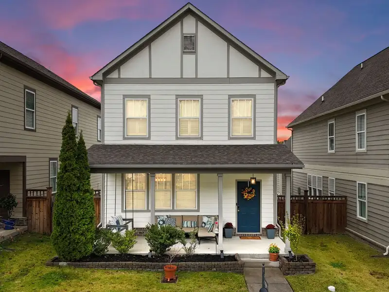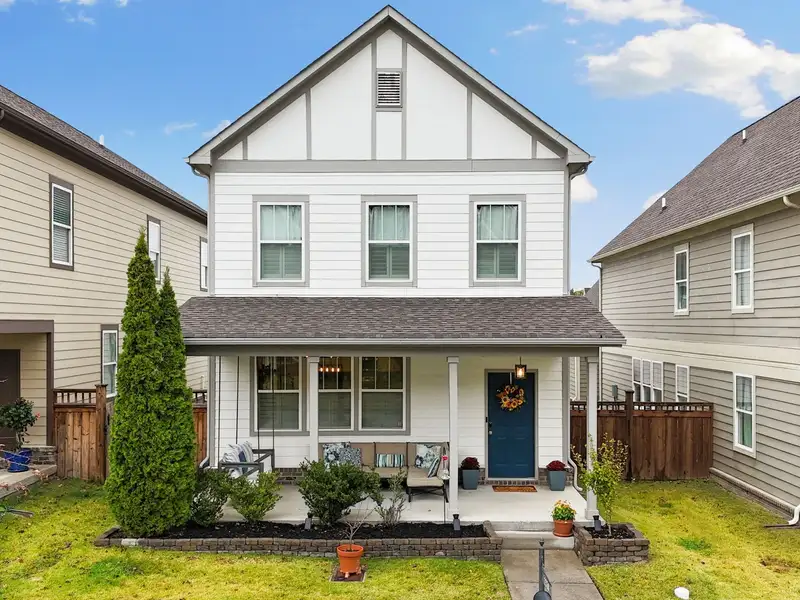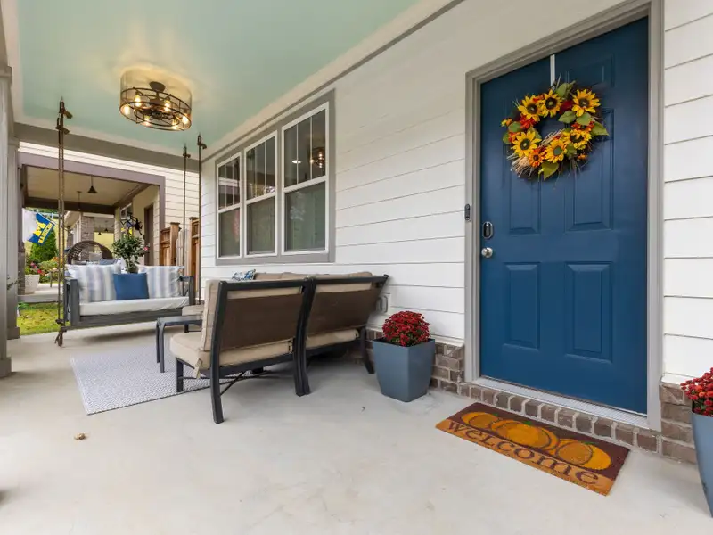 - Covered front porch with built-in swing