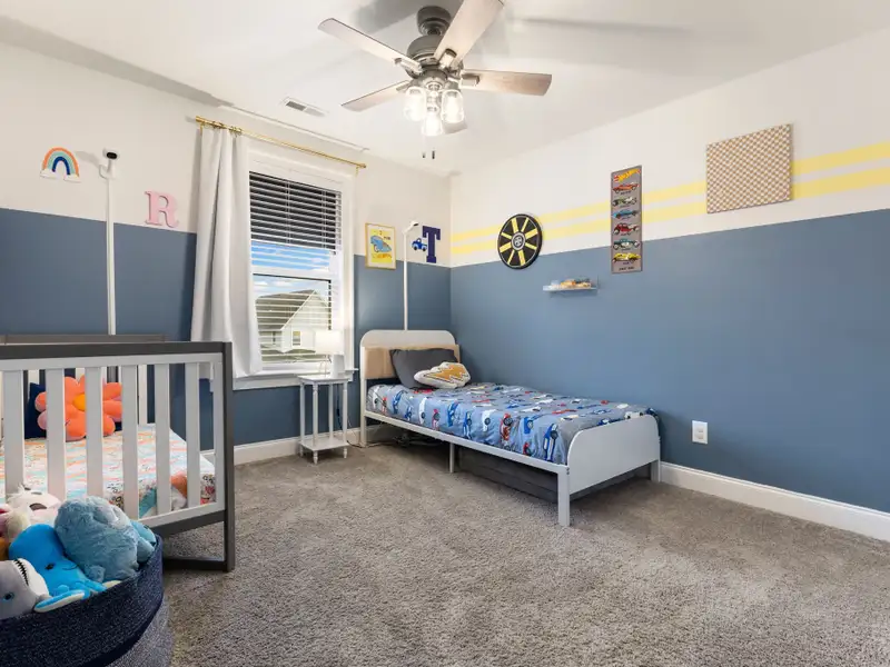 - Two-car rear-entry garage