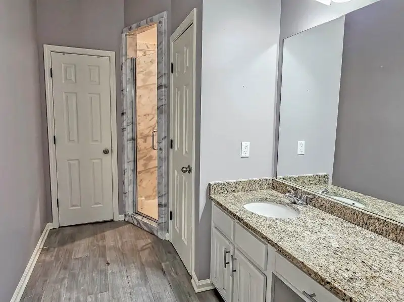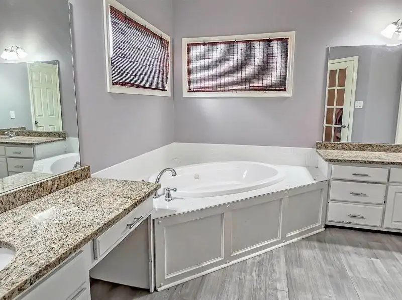 - Downstairs primary suite with jetted tub and walk-in shower