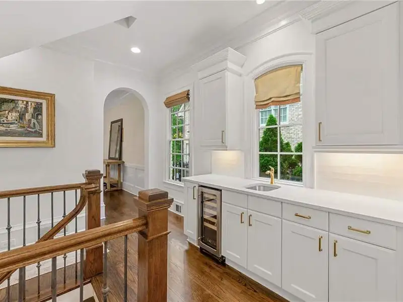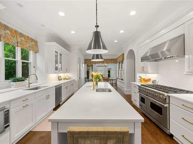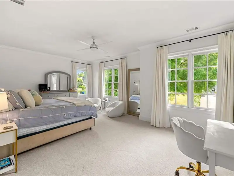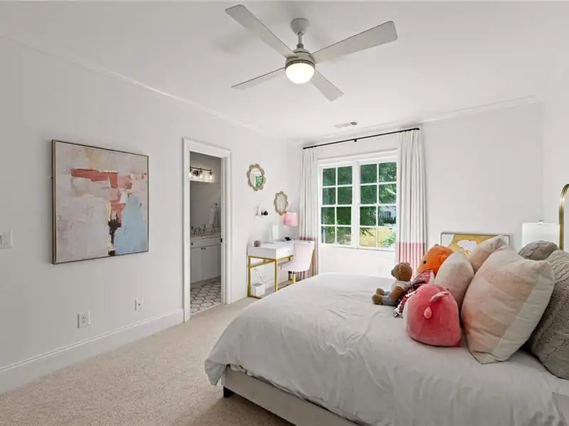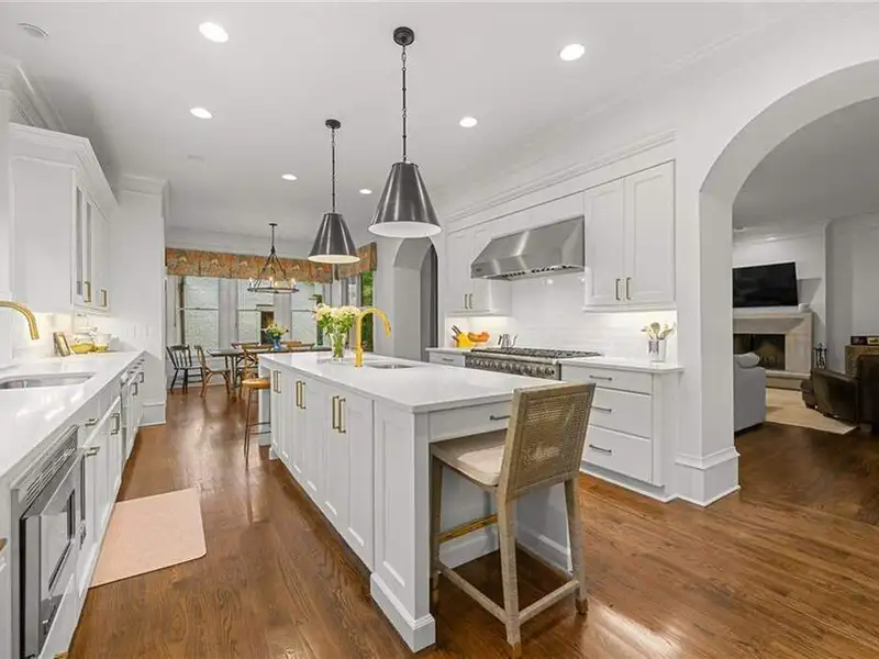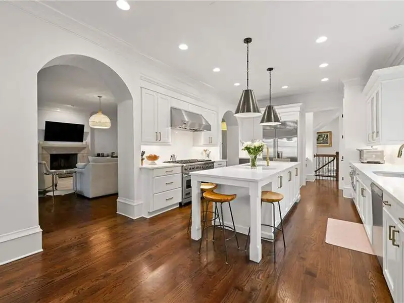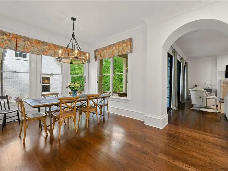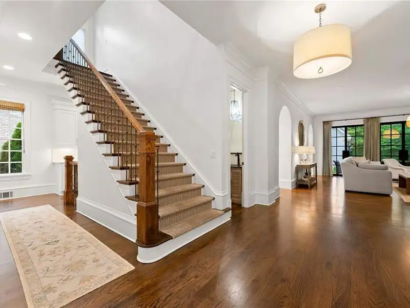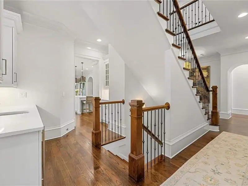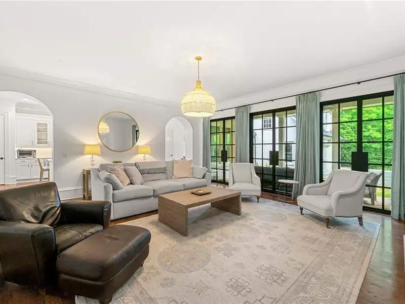 This exquisite residence is recently renovated and updated, now a modernized and super stylish move-in ready home in North Buckhead, ideally located within walking distance to Sarah Smith Elementary. From the moment you arrive, you'll love the improved landscaping and new steel front doors. The elegant arched entryway leads to a formal dining room on the left and smartly redesigned office with French doors on the right, with a tucked away full guest suite that's perfect for visitors or multigenerational living - just the beginning of this home's gracious flow and timeless character. The complete main floor transformation now offers a seamless, open-concept layout perfect for entertaining, with beautiful new steel floor-to-ceiling windows and door opening to the patio. Ten-foot ceilings, refinished hardwood floors, wide hallways, and chic new custom limestone hearth and mantle frame set a sophisticated tone. The chef's kitchen has been fully updated and refreshed with new countertops and backsplash, hardware, and convenient island sink. You'll love the Viking range, walk-in pantry, butler's pantry and wet bar, and breakfast area overlooking new landscaping. Upstairs, the owner's suite is an oversized, comfortable and luxurious retreat, complete with gas fireplace, sitting area, and dual custom closets. The spa-inspired primary bathroom has been completely gutted and renovated with double vanities, a walk-in glass shower with dual showerheads and soaking tub. Each of the three additional upstairs bedrooms features its own en-suite bathroom-two of which have been fully updated with new tile, fixtures, and finishes-as well as walk-in closets. The laundry room has also been fully renovated with custom cabinetry, a sink, and linen storage. The terrace level underwent a major renovation in 2023, creating a stylish media/recreation space with exposed wood beams and stained concrete floors. The second kitchen features custom cabinetry, a marble island, and premium stainless appliances, opening to a game and dining area. A sixth bedroom and newly renovated full bath with marble counters and a glass-enclosed shower provide a perfect space for guests or an au pair. There's also a gym, powder room, and plenty of storage. The expensive and "unseen but felt" upgrades are tremendous as well: new drainage system, new driveway with basketball hoop, open-cell spray foam attic insulation, two new tankless water heaters, EV charging station in the garage, whole-house WiFi with multiple access points, Nest smart thermostats, new security system with Ring doorbell and floodlight cameras, new gutters, downspouts, and guards. Perfectly located near shopping, dining, PATH 400 trails, and major highways, this meticulously renovated home offers the pinnacle of comfort, convenience, and luxury in one of Atlanta's top neighborhoods.