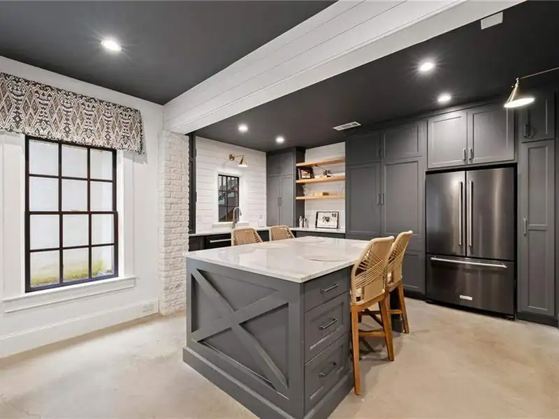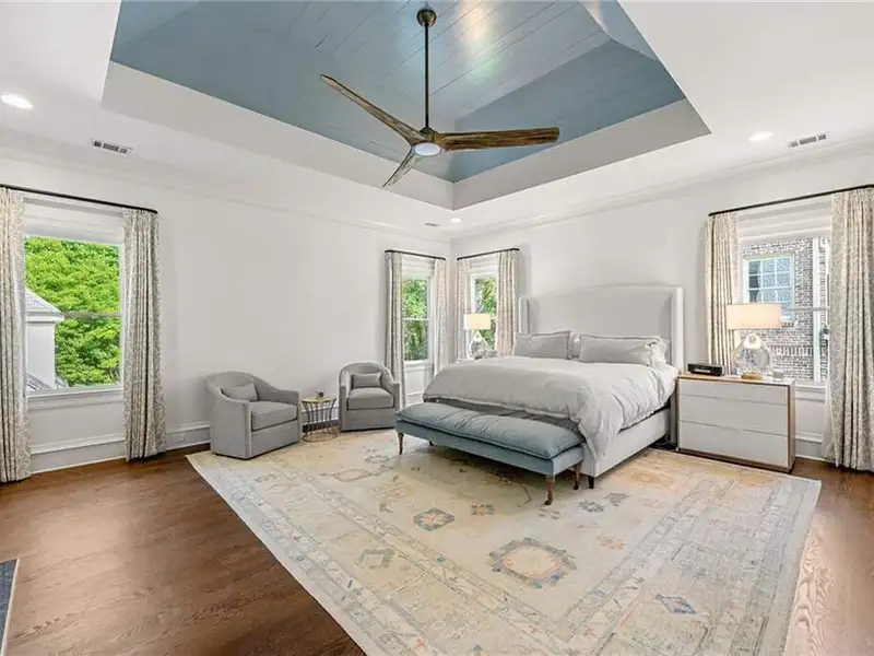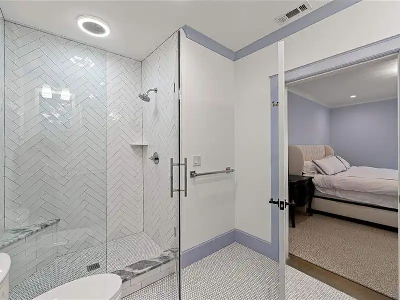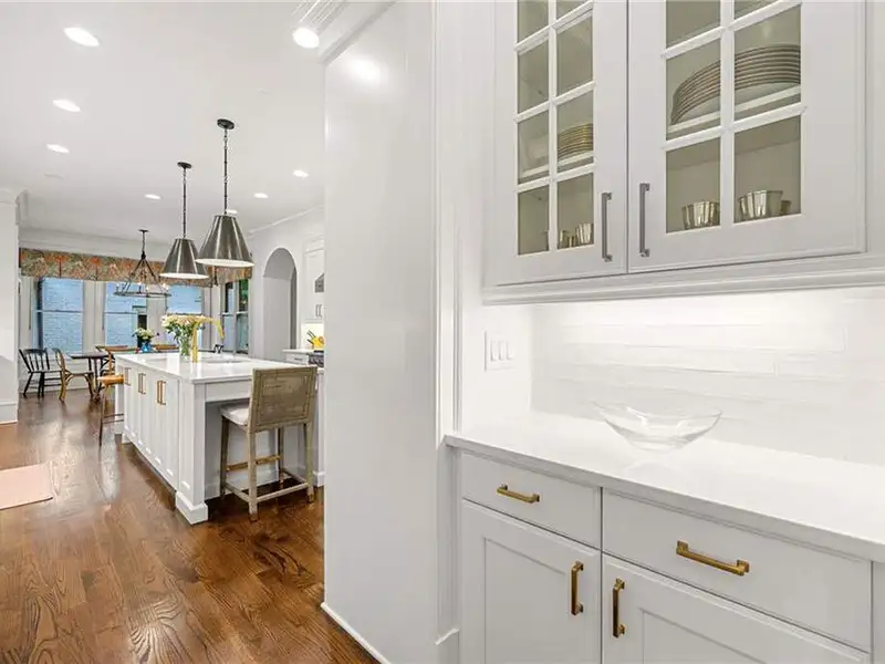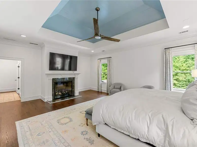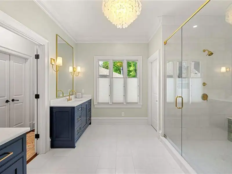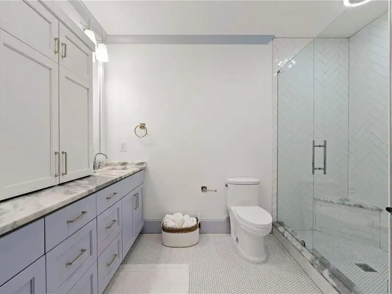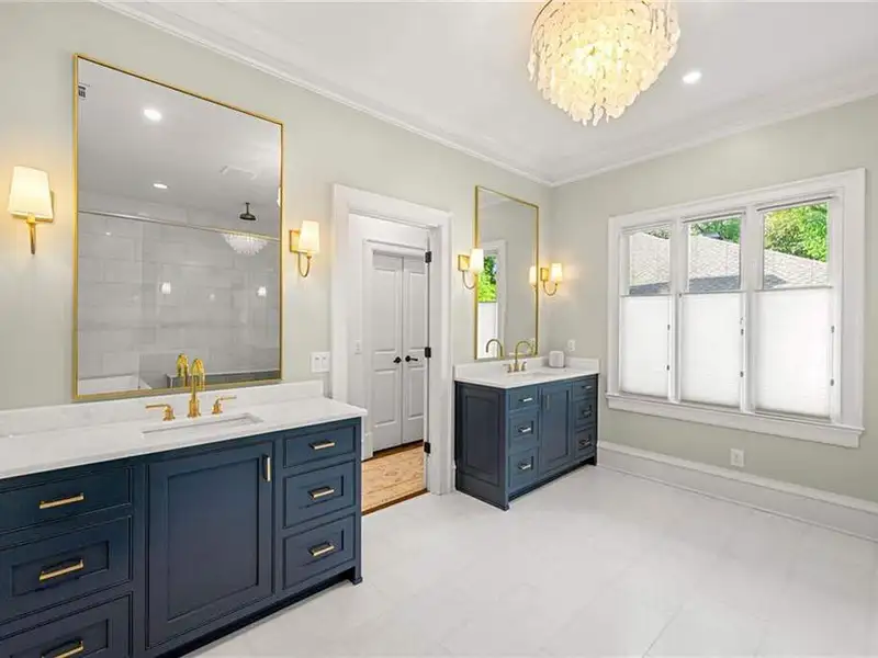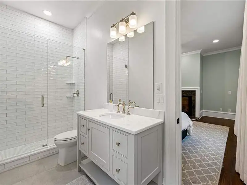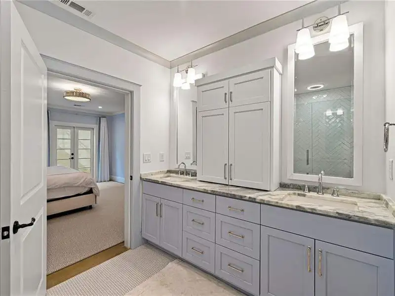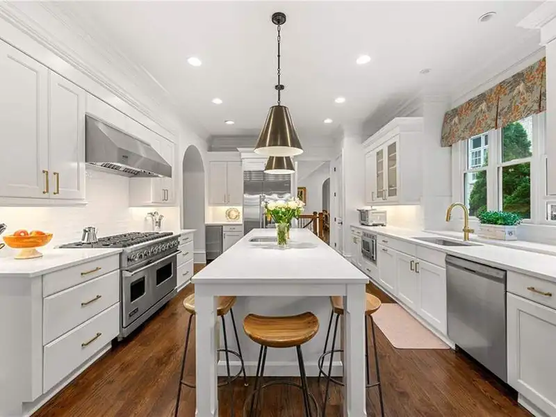 This exquisite residence is recently renovated and updated, now a modernized and super stylish move-in ready home in North Buckhead, ideally located within walking distance to Sarah Smith Elementary. From the moment you arrive, you'll love the improved landscaping and new steel front doors. The elegant arched entryway leads to a formal dining room on the left and smartly redesigned office with French doors on the right, with a tucked away full guest suite that's perfect for visitors or multigenerational living - just the beginning of this home's gracious flow and timeless character. The complete main floor transformation now offers a seamless, open-concept layout perfect for entertaining, with beautiful new steel floor-to-ceiling windows and door opening to the patio. Ten-foot ceilings, refinished hardwood floors, wide hallways, and chic new custom limestone hearth and mantle frame set a sophisticated tone. The chef's kitchen has been fully updated and refreshed with new countertops and backsplash, hardware, and convenient island sink. You'll love the Viking range, walk-in pantry, butler's pantry and wet bar, and breakfast area overlooking new landscaping. Upstairs, the owner's suite is an oversized, comfortable and luxurious retreat, complete with gas fireplace, sitting area, and dual custom closets. The spa-inspired primary bathroom has been completely gutted and renovated with double vanities, a walk-in glass shower with dual showerheads and soaking tub. Each of the three additional upstairs bedrooms features its own en-suite bathroom-two of which have been fully updated with new tile, fixtures, and finishes-as well as walk-in closets. The laundry room has also been fully renovated with custom cabinetry, a sink, and linen storage. The terrace level underwent a major renovation in 2023, creating a stylish media/recreation space with exposed wood beams and stained concrete floors. The second kitchen features custom cabinetry, a marble island, and premium stainless appliances, opening to a game and dining area. A sixth bedroom and newly renovated full bath with marble counters and a glass-enclosed shower provide a perfect space for guests or an au pair. There's also a gym, powder room, and plenty of storage. The expensive and "unseen but felt" upgrades are tremendous as well: new drainage system, new driveway with basketball hoop, open-cell spray foam attic insulation, two new tankless water heaters, EV charging station in the garage, whole-house WiFi with multiple access points, Nest smart thermostats, new security system with Ring doorbell and floodlight cameras, new gutters, downspouts, and guards. Perfectly located near shopping, dining, PATH 400 trails, and major highways, this meticulously renovated home offers the pinnacle of comfort, convenience, and luxury in one of Atlanta's top neighborhoods.