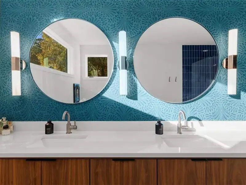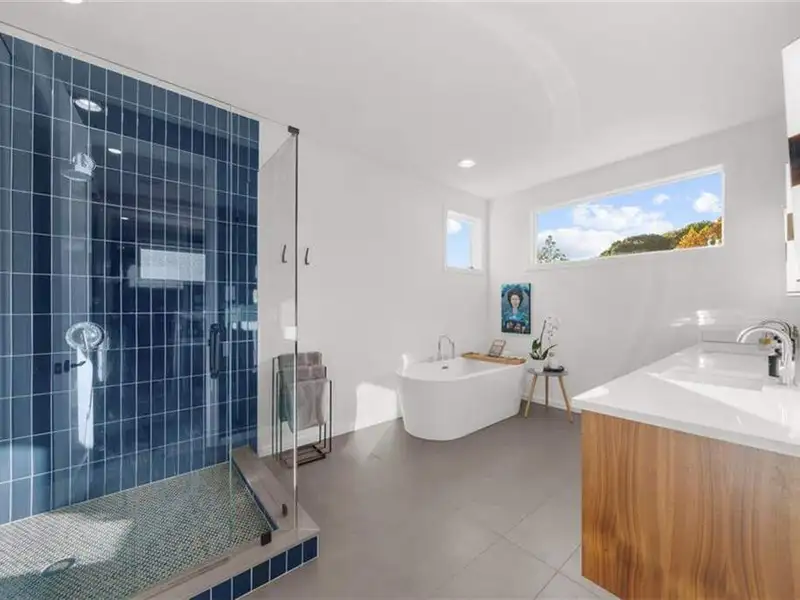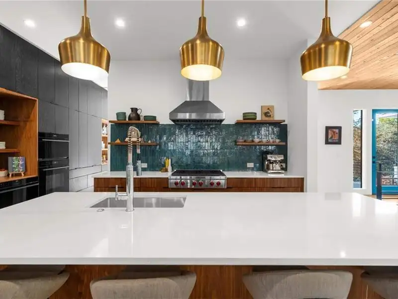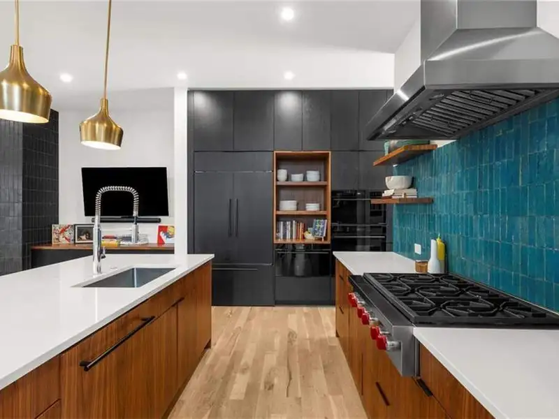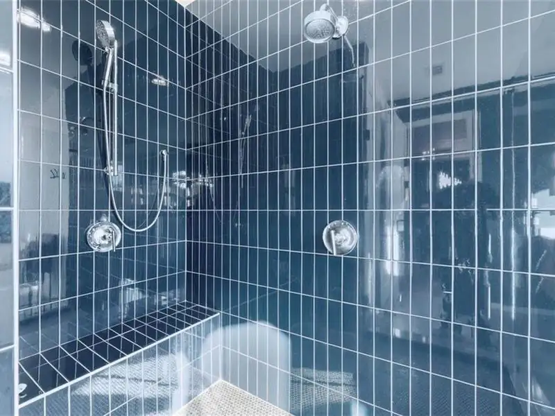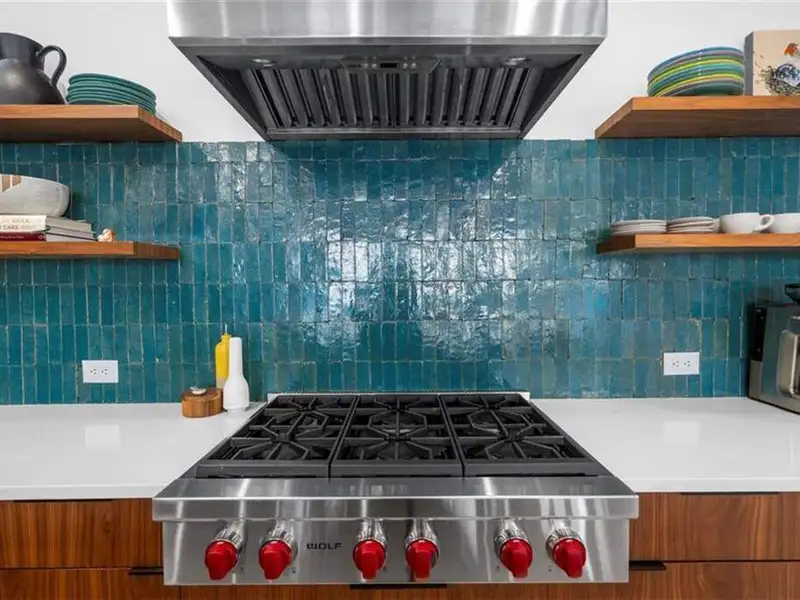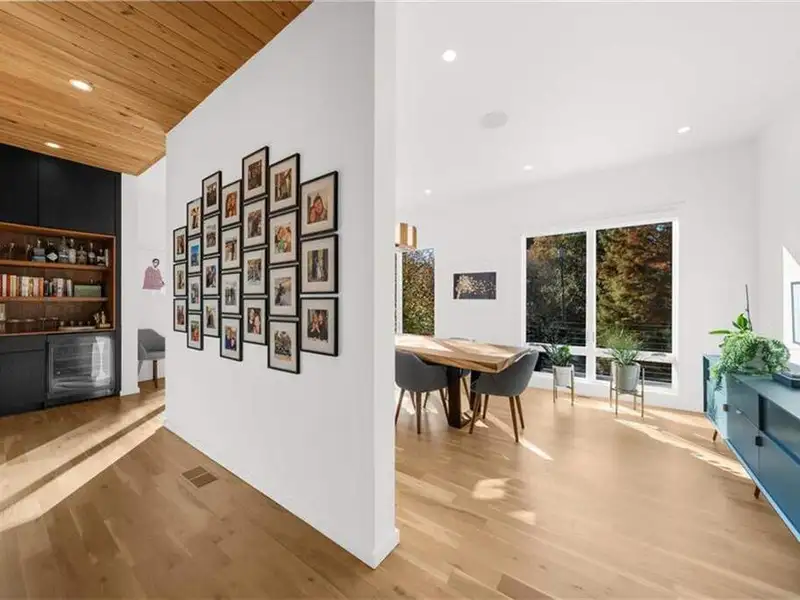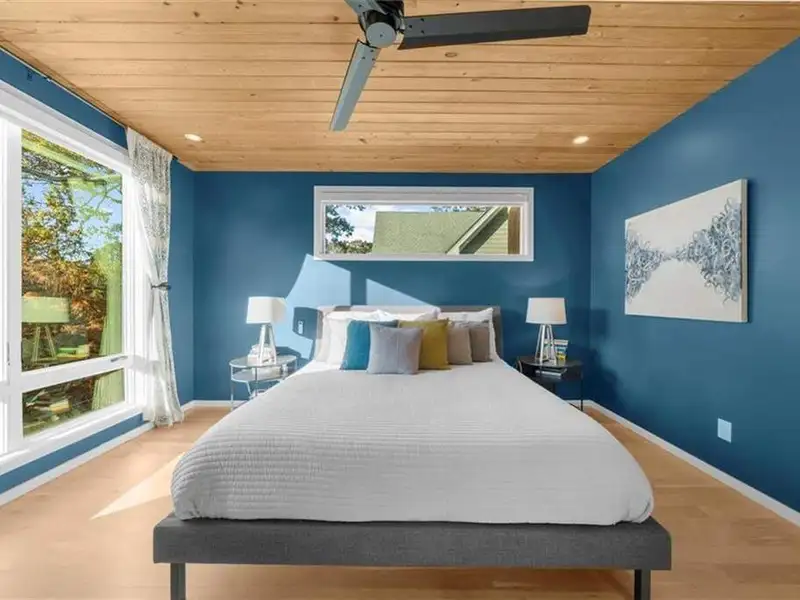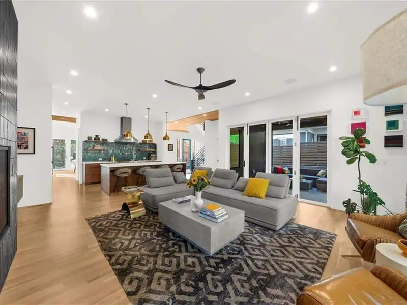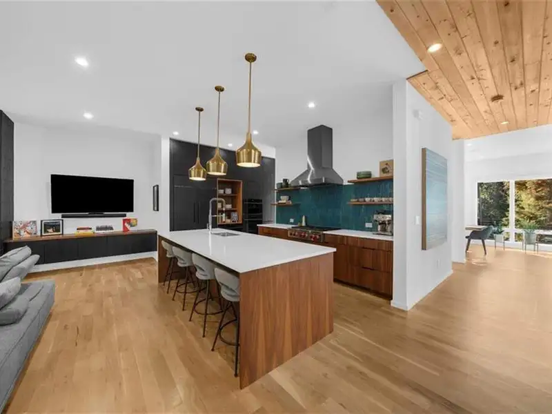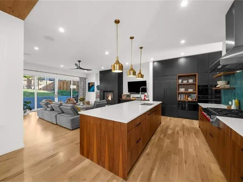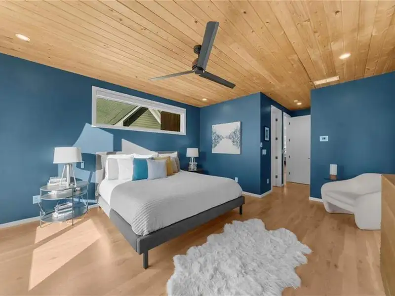 - Floor-to-Ceiling Fireplace and Glass Doors