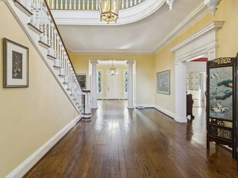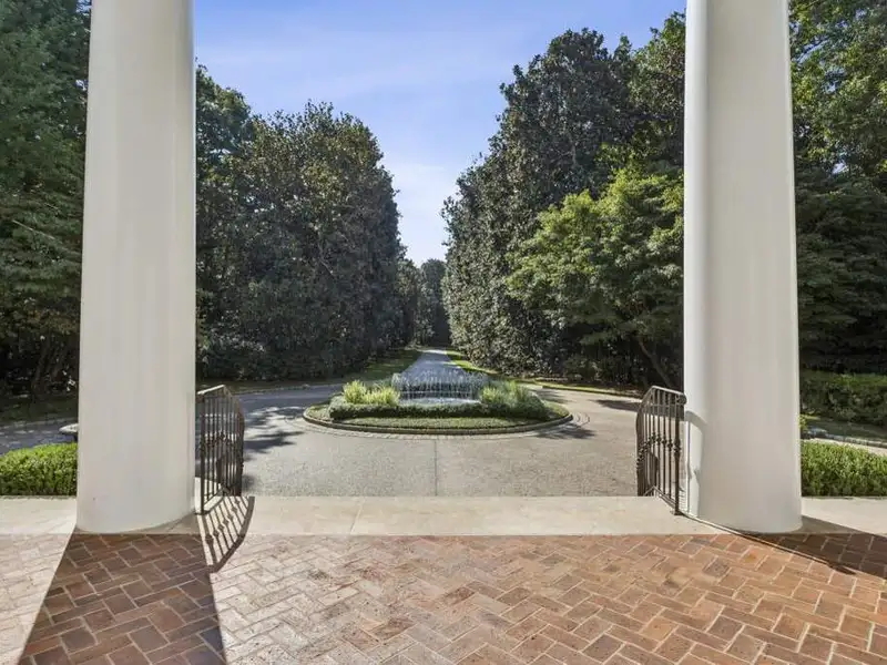- Long private driveway with magnolia trees