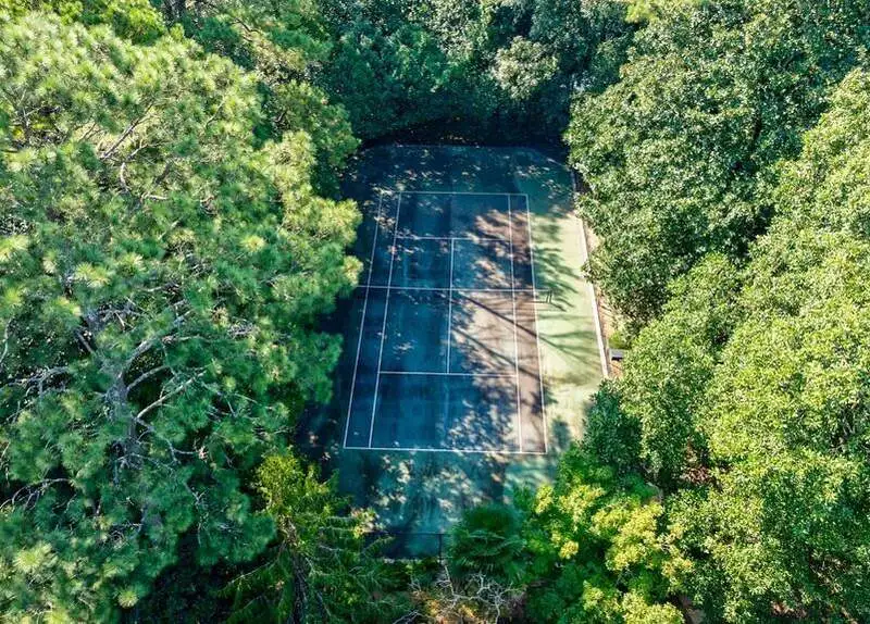 - Tennis court and two-car garage