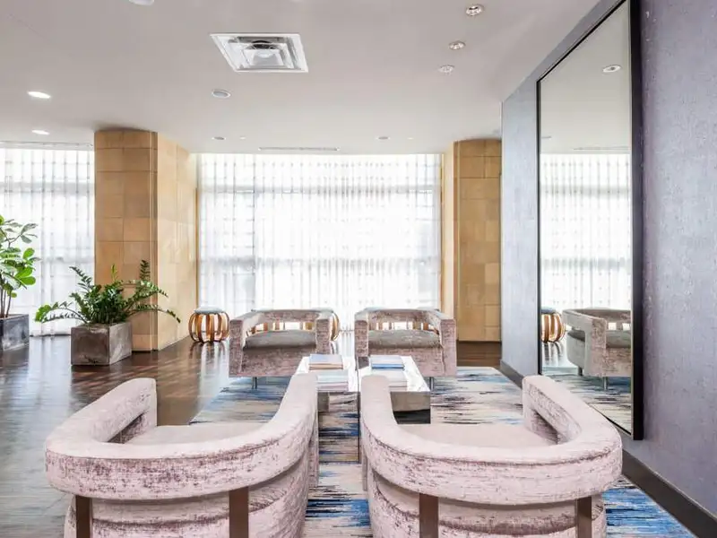 - Panoramic city views from nearly every room