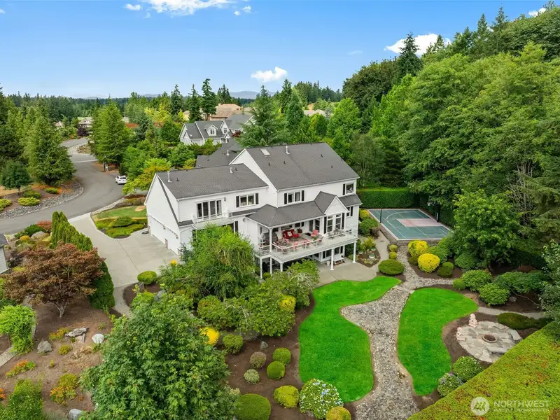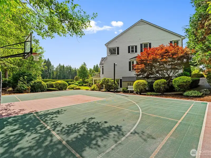 - Sports court, covered patio, and firepit